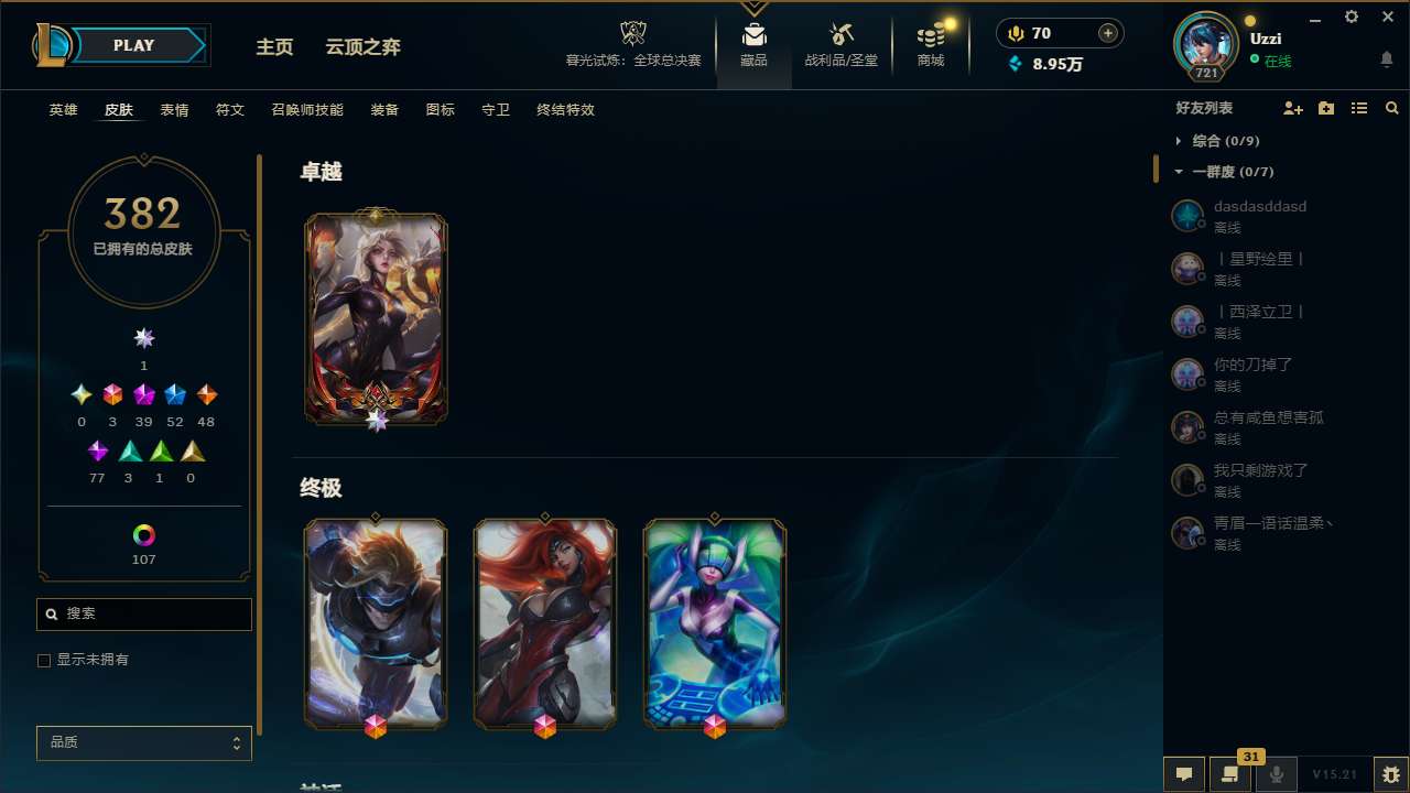 【11087721】[13109835]t29121【班德尔城】联盟不朽卡莎 殿堂传奇卡莎 382皮肤 151炫彩 10臻彩 39神话/52限定/48传说/171英雄 账号等级:721 单双排段位:铂金【重要头像】KDA萨勒芬妮 EDG厄斐琉斯 星守金克丝炫彩 战斗学院伊泽瑞尔神话炫彩 至臻剪纸仙灵希维尔 至臻太空律动娜美 至臻幻灵战斗猫金克丝 至臻神凰行者霞 至臻女帝黛安娜