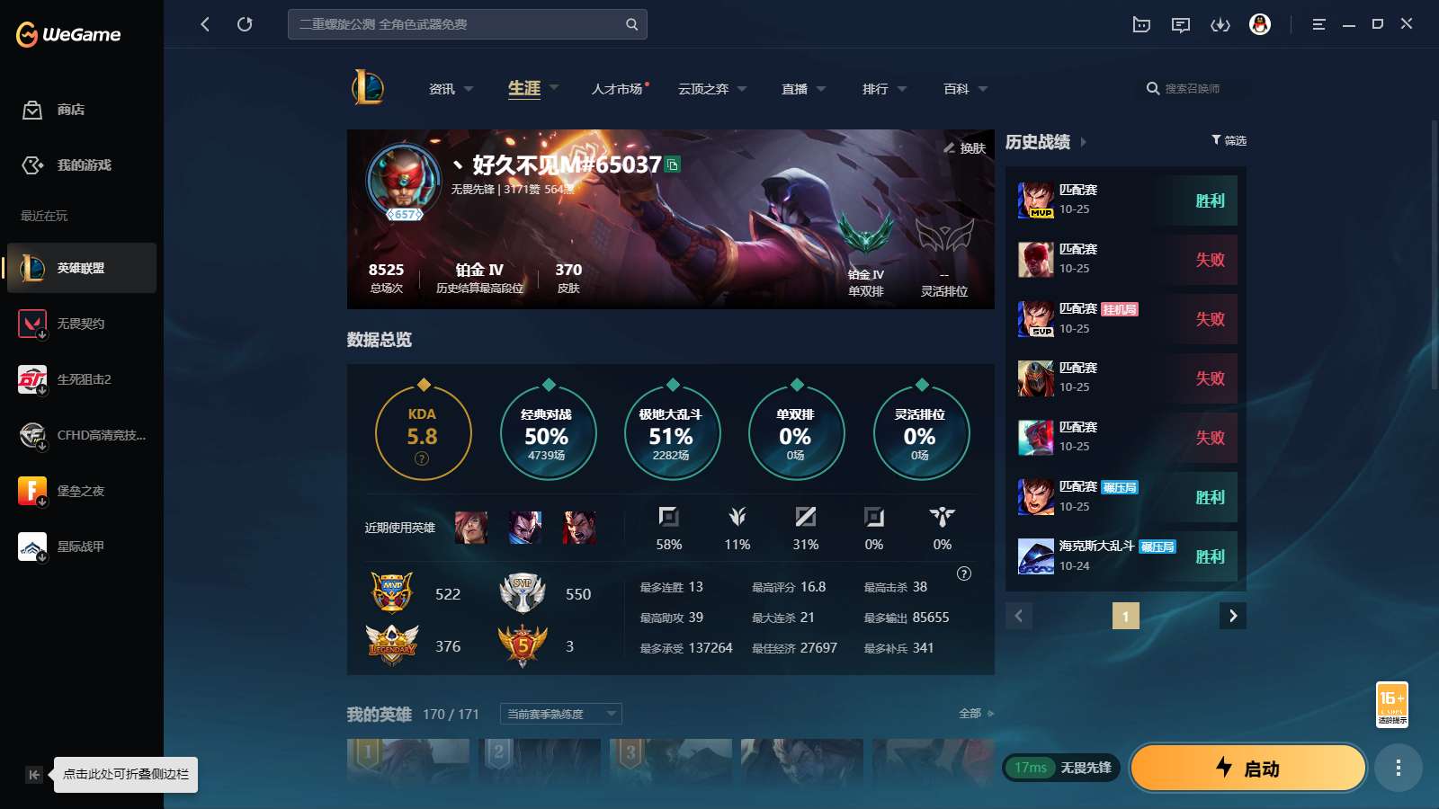 游戏区服:英雄联盟 / 网通 / 无畏先锋