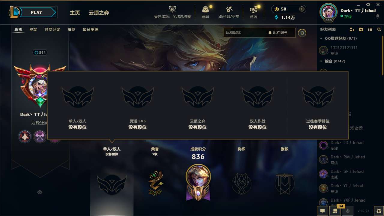 游戏区服:英雄联盟 / 电信 / 皮尔特沃夫