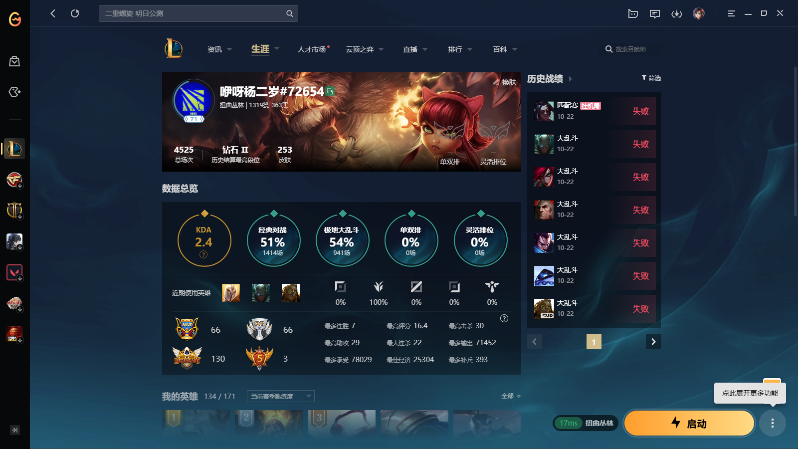 游戏区服:英雄联盟 / 网通 / 扭曲丛林