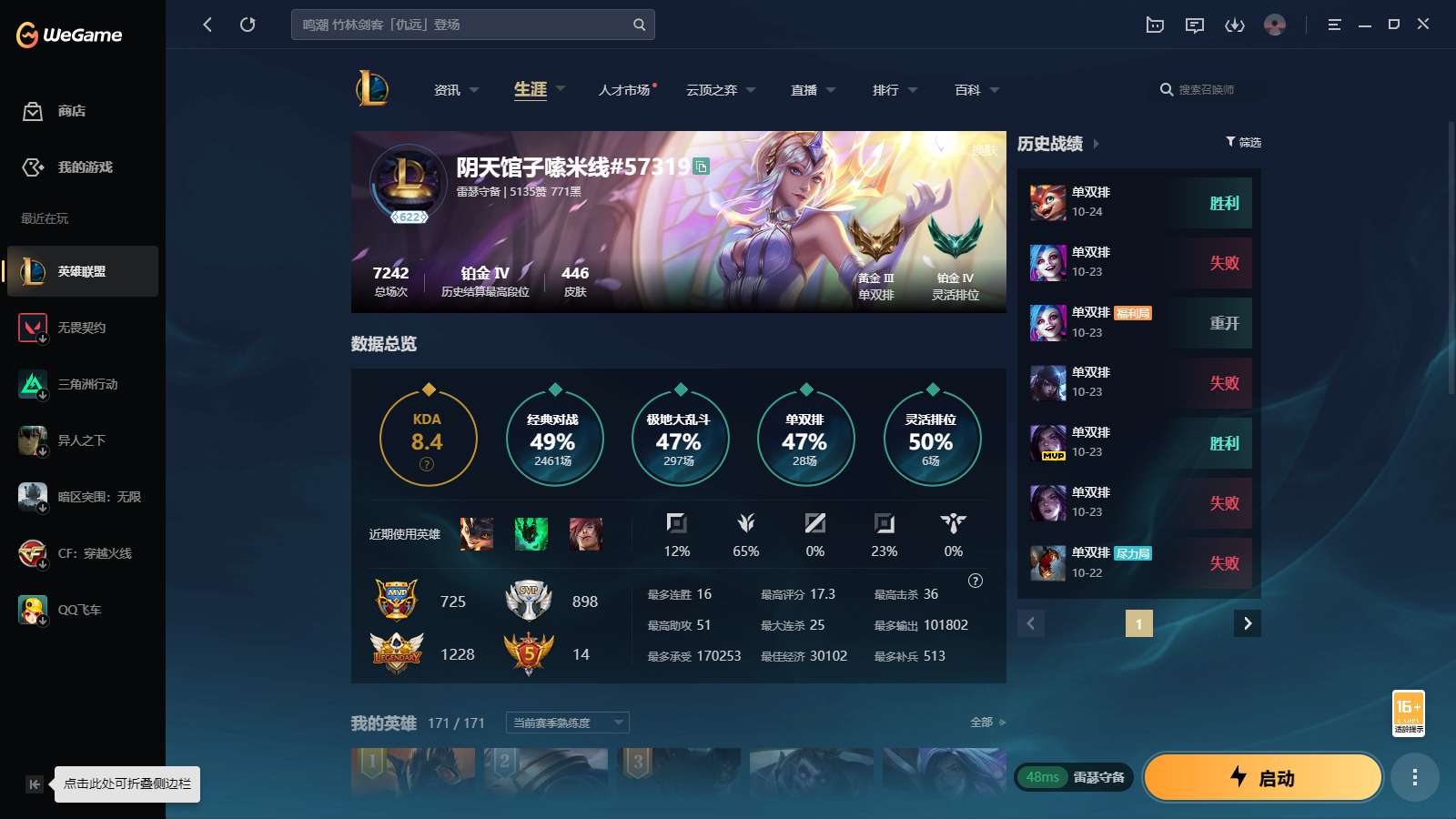 游戏区服:英雄联盟 / 电信 / 雷瑟守备