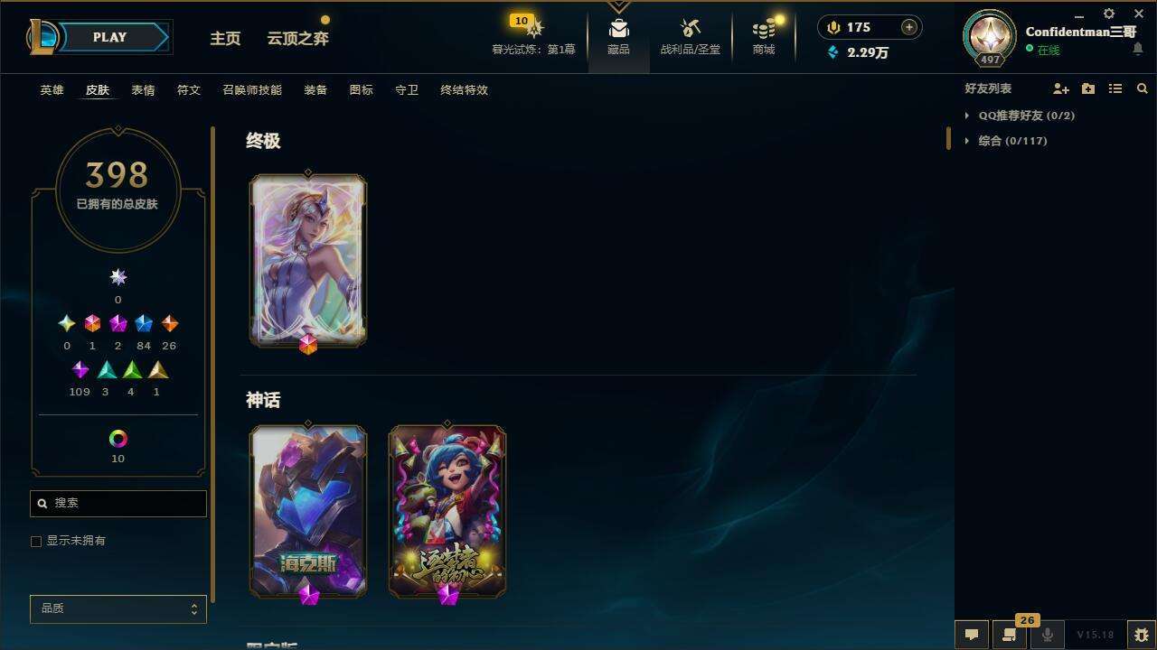 【11087921】[13108540]t26844【皮城警备】398皮肤 10炫彩 2神话/84限定/26传说/171英雄 账号等级:497 单双排段位:白银 【重要头像】小斗 【重要皮肤】海克斯科技拉莫斯 胜利之王泰达米尔 舞会公主安妮 生化领主泰达米尔 电玩勇者锐雯 电玩女神阿狸 星之守护者伊泽瑞尔 碧玉之牙卡西奥佩娅 古琴余韵娑娜 广寒仙子嫦娥 虎痴之拳蔚 张辽文远 司马懿仲达 神龙之翼