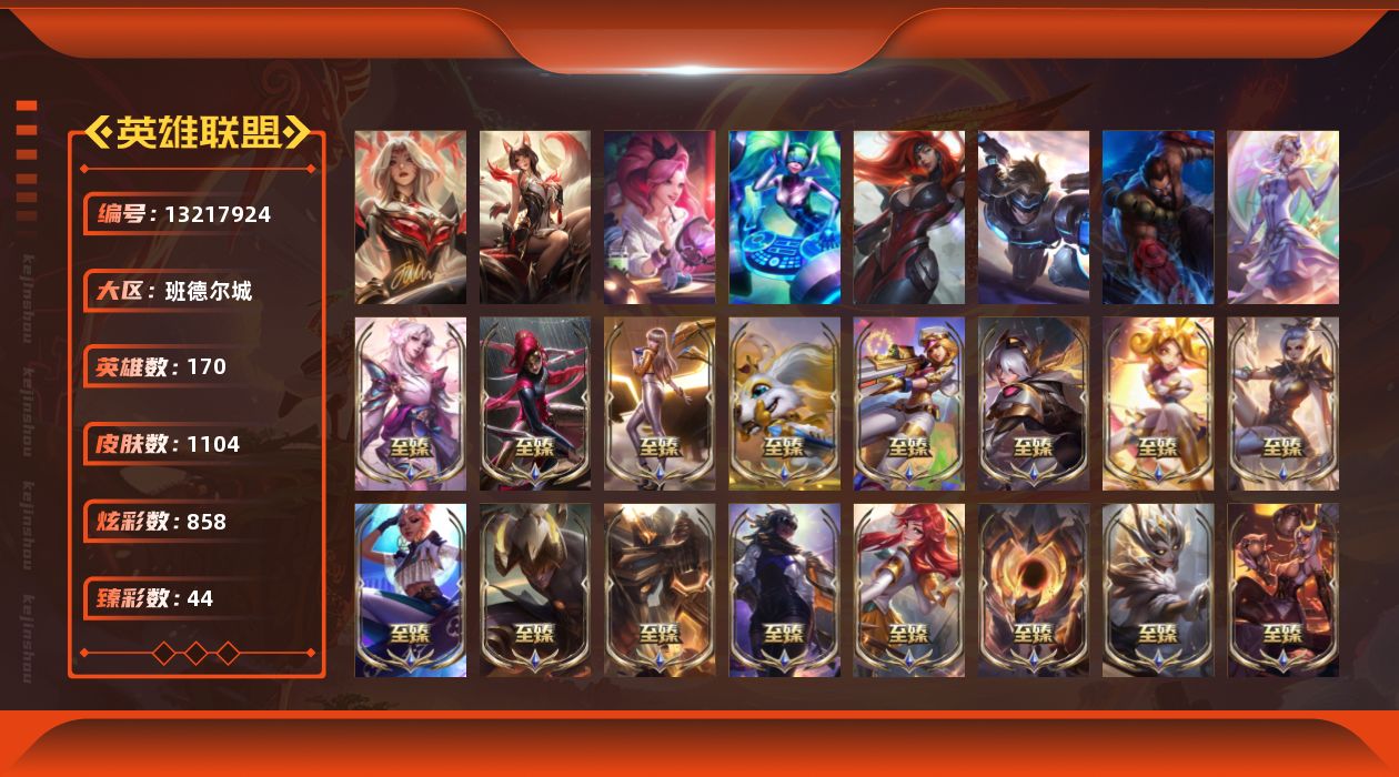 【11087982】[13217924]t22754 顶配版阿狸【班德尔城】1104皮肤 858炫彩 44臻彩 61神话/173限定/103传说/170英雄 账号等级:1012 云顶神话:3 【重要头像】星守阿狸 云顶战斗学院伊泽瑞尔 云顶古琴娑娜 云顶星守阿卡丽 爱意绵绵 爱情鸽 爱情之歌 心型钥匙 觅心游侠卢锡安 觅心之翼奎因 雪花 御星魔矢艾希 银河魔装机神安妮 大家伙 周年女刀图标 两仪