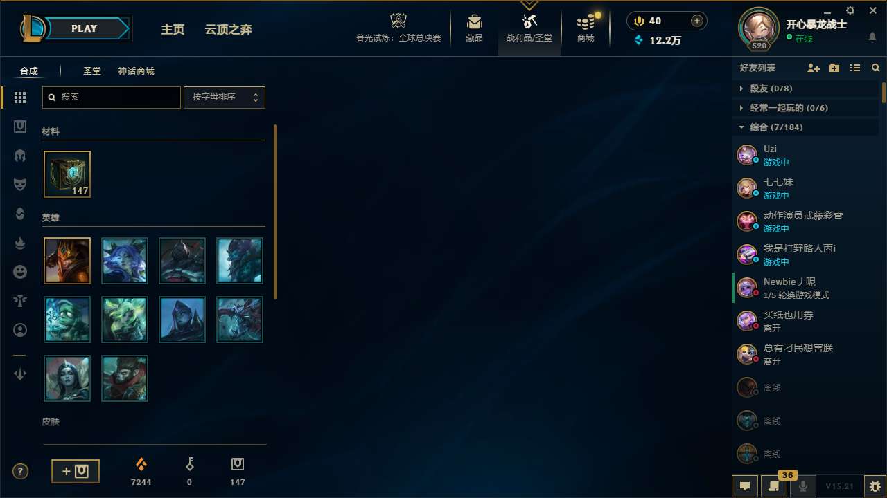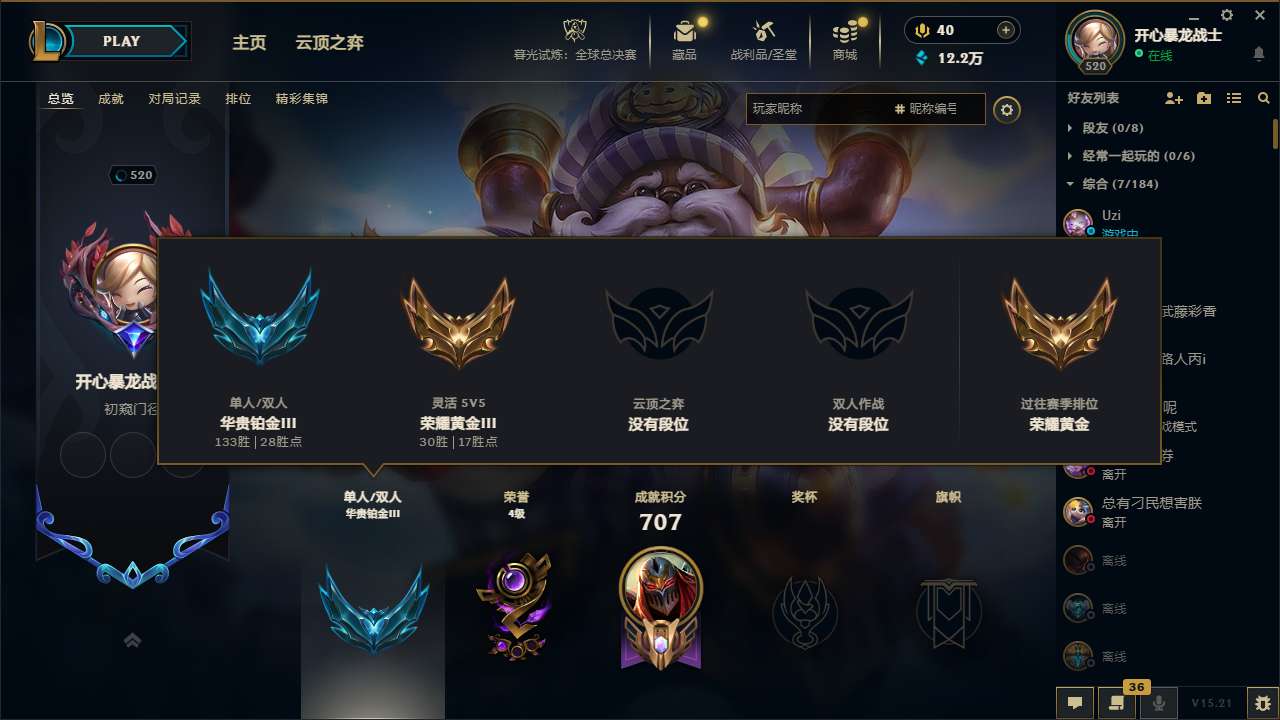 游戏区服:英雄联盟 / 电信 / 钢铁烈阳