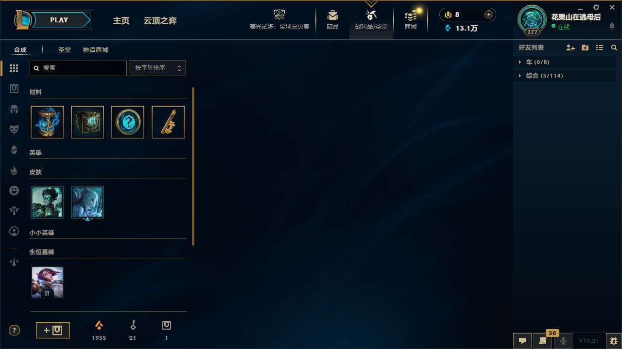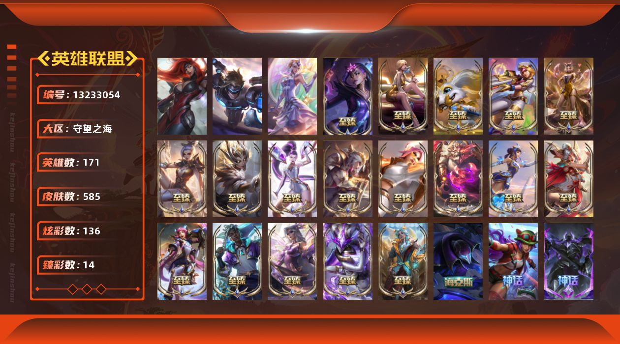 【11088497】[13233054]t29352 皇冠账号【守望之海】585皮肤 136炫彩 14臻彩 25神话/73限定/66传说/171英雄 账号等级:377 云顶神话:2 单双排段位:黑铁【重要头像】云顶战斗学院伊泽瑞尔 云顶古琴娑娜 两仪无极 北极星神黛安娜 北极星神黛安娜炫彩 至臻幻灵战斗猫金克丝 至臻青花瓷拉克丝 至臻魔女婕拉 水晶圣骑蕾欧娜头 【重要皮肤】暗星