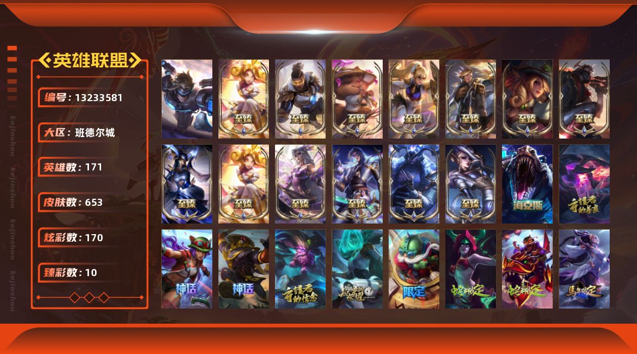 【11089236】[13233581]t29355【班德尔城】原皮龙瞎 653皮肤 170炫彩 10臻彩 21神话/107限定/67传说/171英雄 账号等级:886 单双排段位:铂金【重要头像】至爱的鹿 心型钥匙 觅心之翼奎因 万圣节卡特琳娜 击拳 KDA萨勒芬妮 幼犬内瑟斯 可爱悠米 披萨鸡 西部魔影卡特琳娜炫彩 【重要皮肤】西部魔影伊芙琳至臻 心之钢永恩至臻 DR