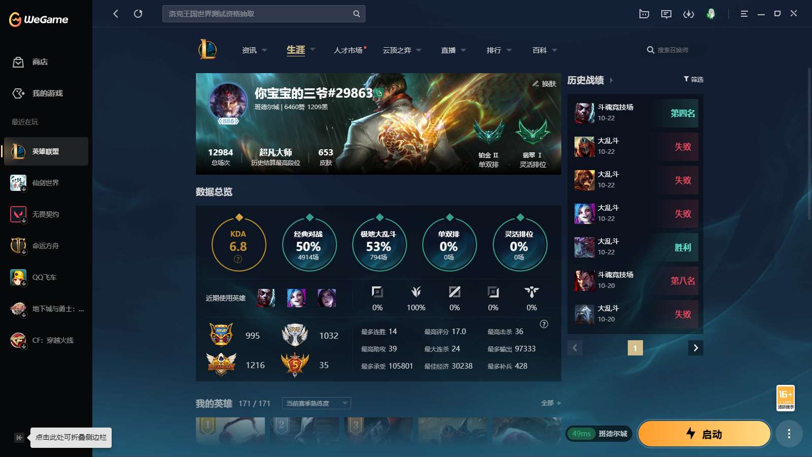 游戏区服:英雄联盟 / 电信 / 班德尔城