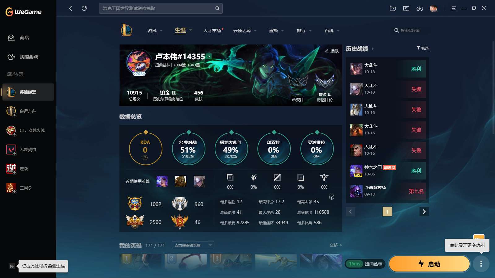 游戏区服:英雄联盟 / 网通 / 扭曲丛林