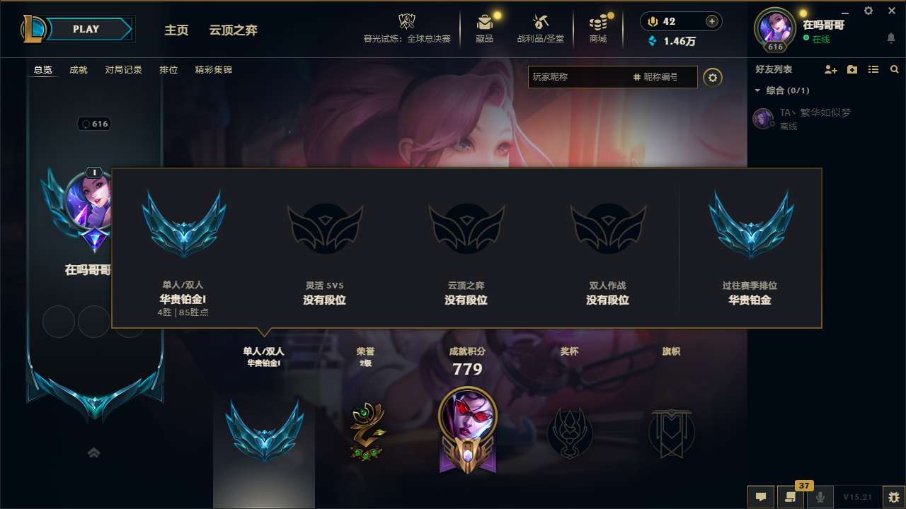 游戏区服:英雄联盟 / 电信 / 班德尔城