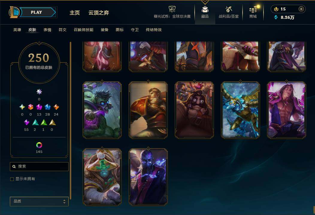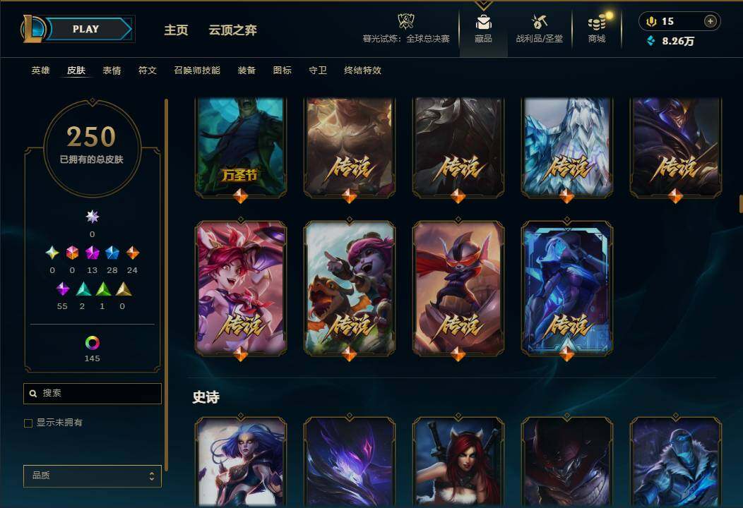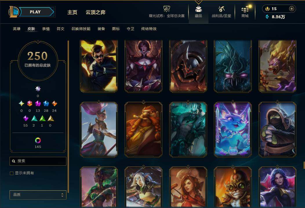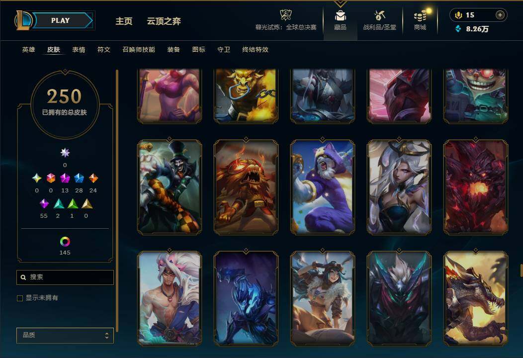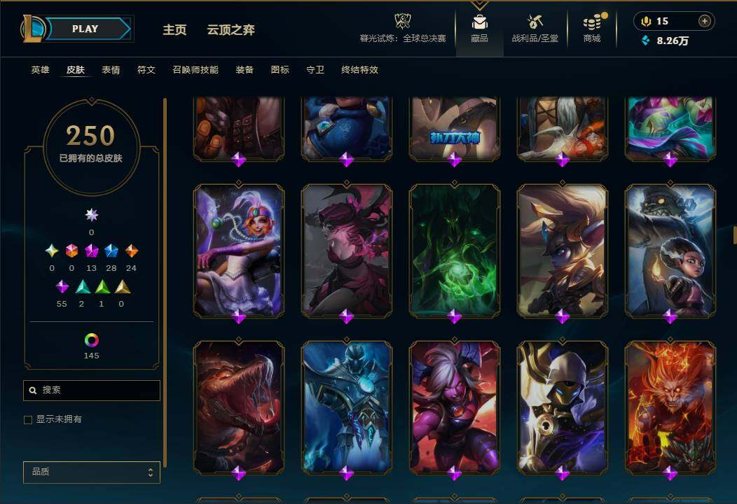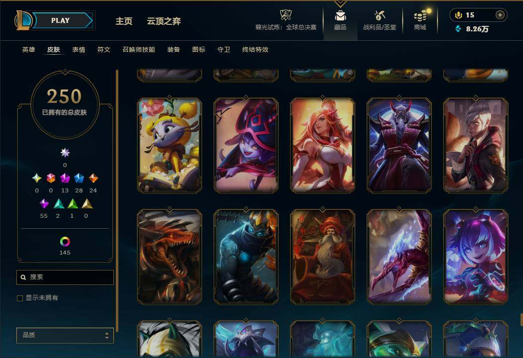 【11092020】【LSA1053】171英雄/250皮肤/13神话/28限定/6臻彩/145炫彩/24传说/55史诗/未定级账号等级:785/至臻征服者贾克斯/至臻绒毛菲兹/至臻绒毛菲兹(2022)/至臻福牛守护者菲奥娜/至臻魔女婕拉/至臻人工智能悠米/至臻心之钢永恩/无畏骑士瑟庄妮赤子初心/征服者阿利斯塔炫金/闭月之颜貂蝉炫金莲华/西部魔影卢锡安贝利尔之怠/殿堂传奇乐芙兰登神/战斗学院盖伦