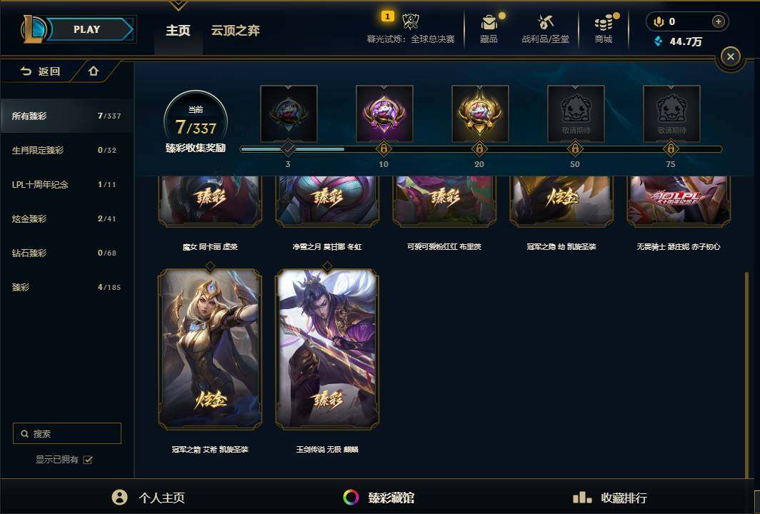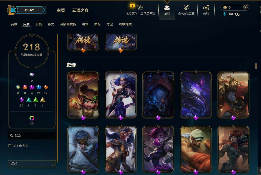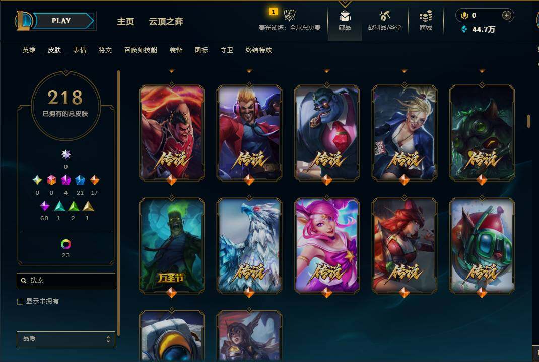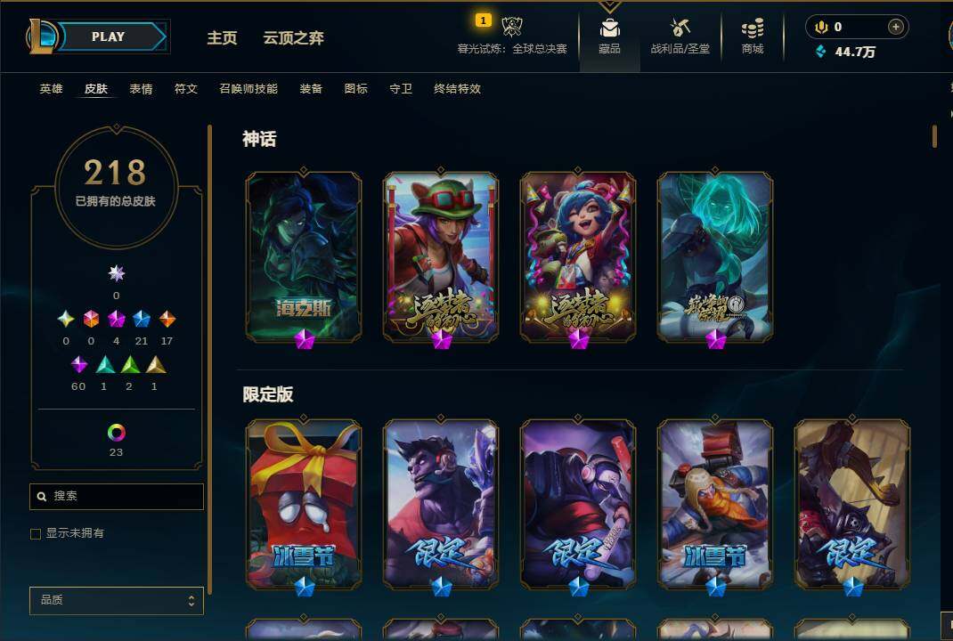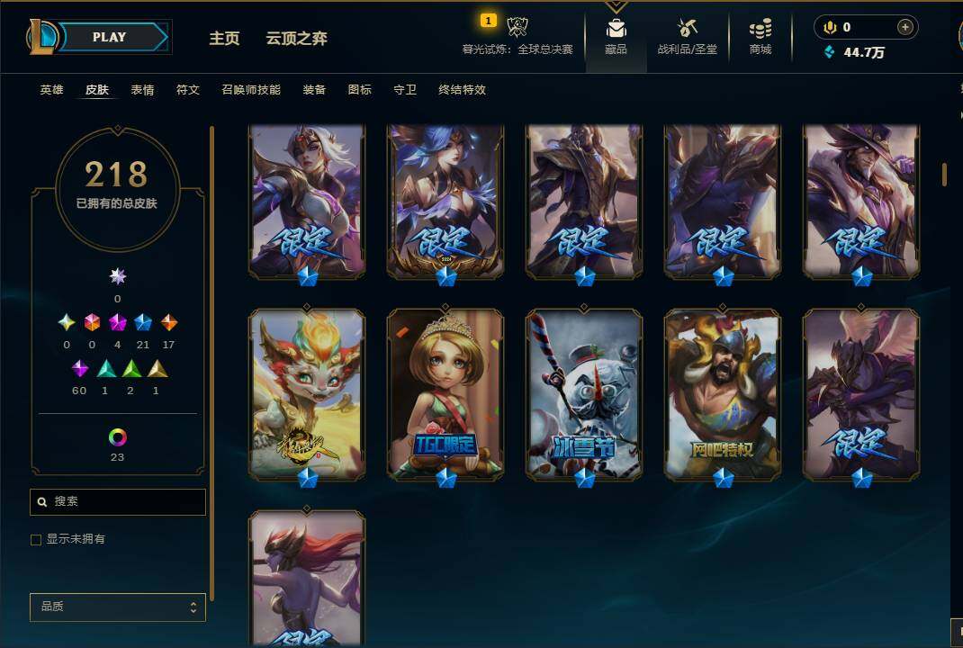 【11092025】【LSA1054】171英雄/218皮肤/4神话/21限定/7臻彩/23炫彩/17传说/60史诗/黄金账号等级:795/无畏骑士瑟庄妮赤子初心/冠军之箭艾希凯旋圣装/冠军之隐劫凯旋圣装/玉剑传说无极麒麟/可爱可爱粉红红布里茨/魔女阿卡丽虚荣/净雪之月莫甘娜冬虹/天龙之子斯莫德/摄魂使者薇恩/圣诞开心鬼提莫/阿木木:“主人不要我了”/雪默丁格/魄罗骑士瑟庄妮/冰雪节辛吉德/十周