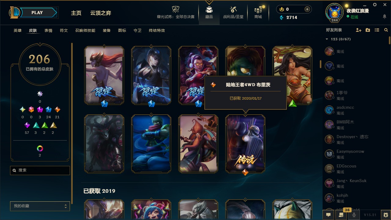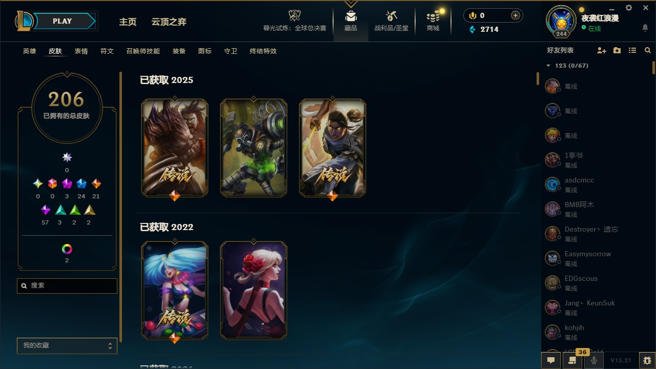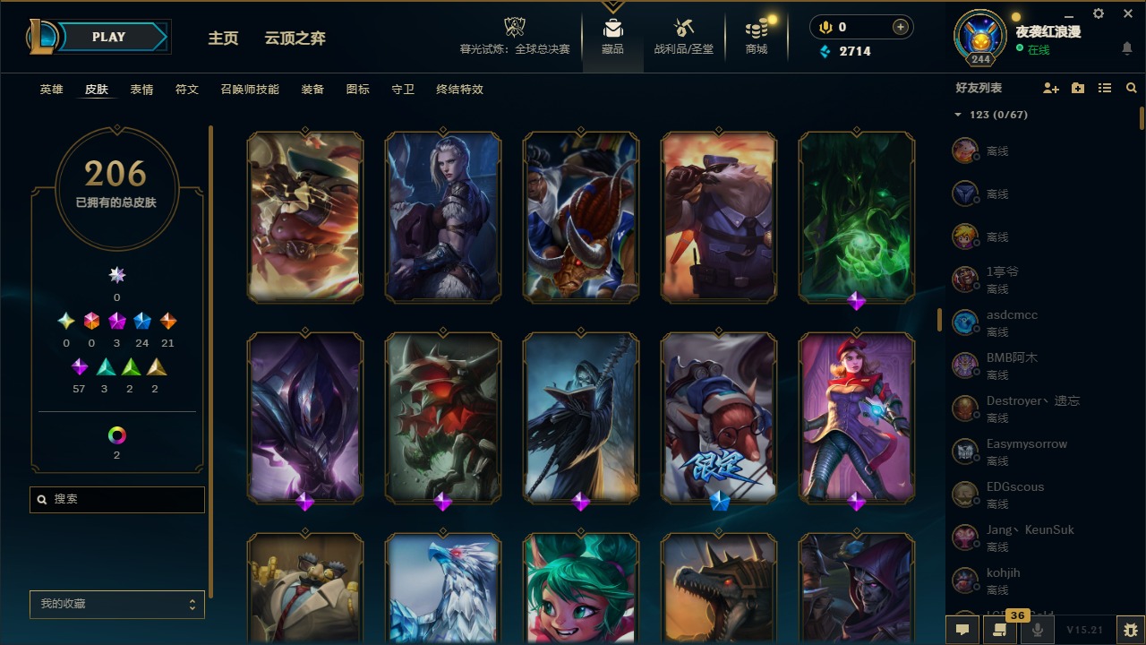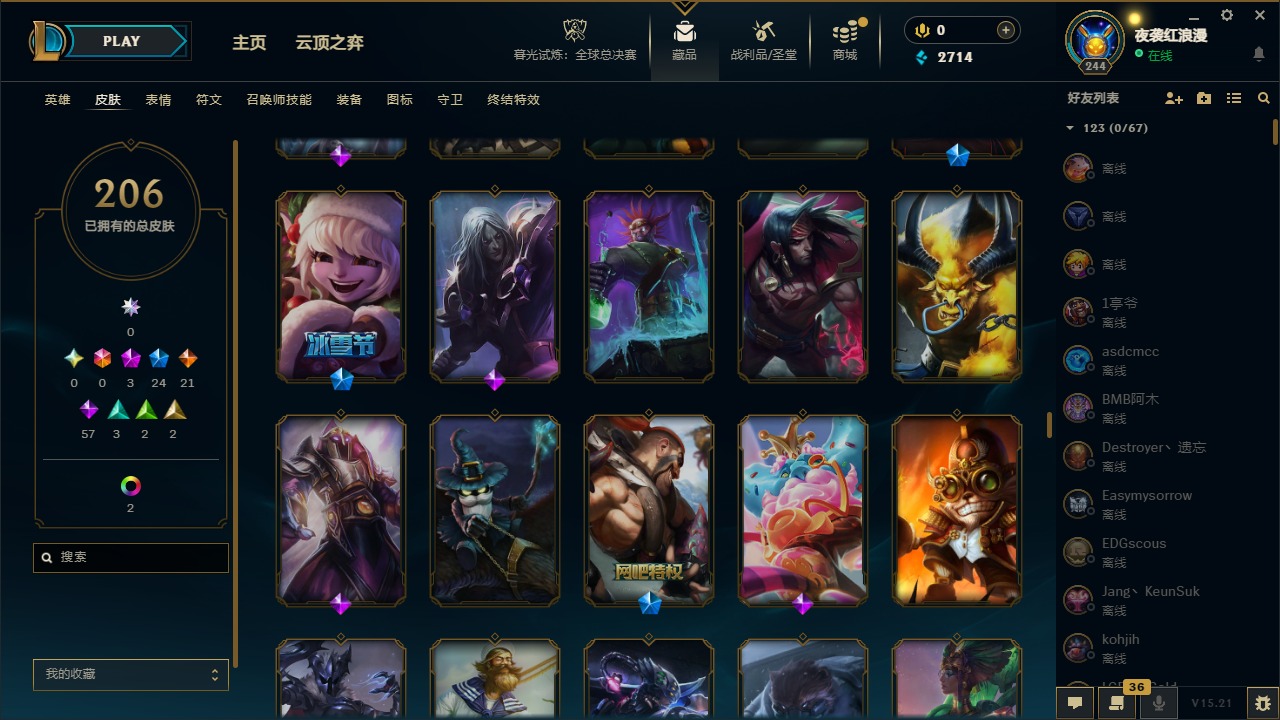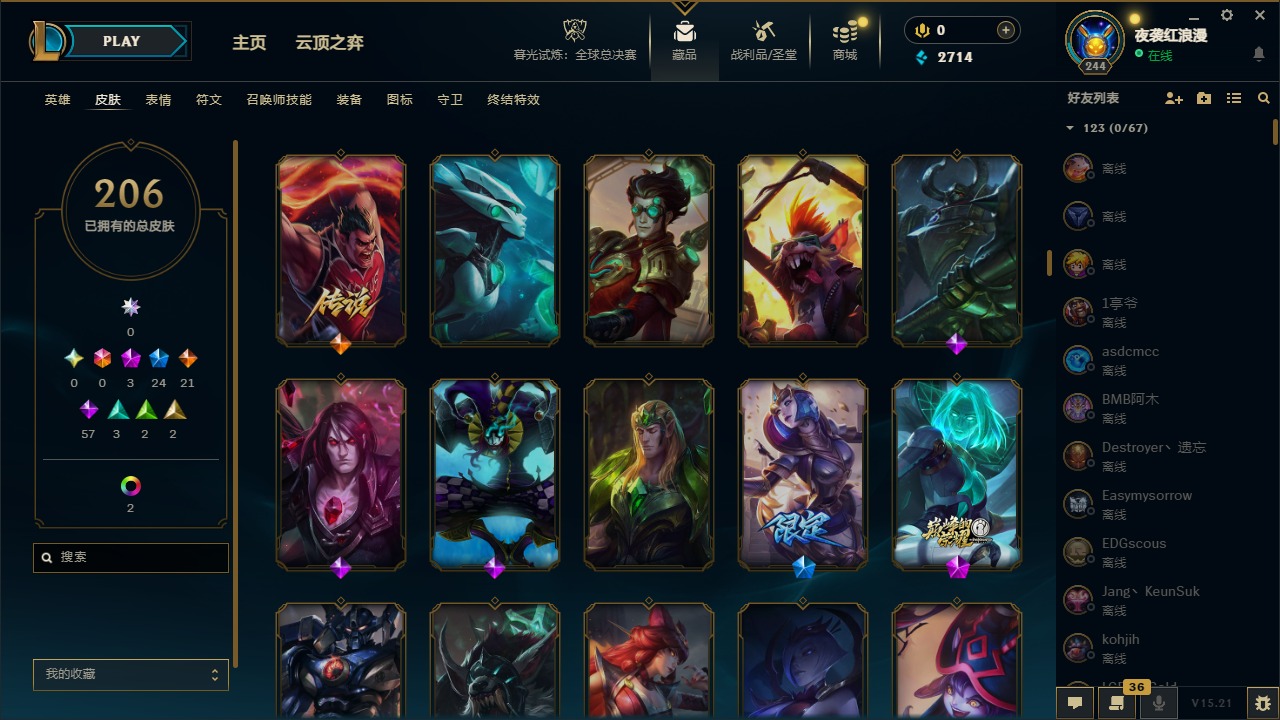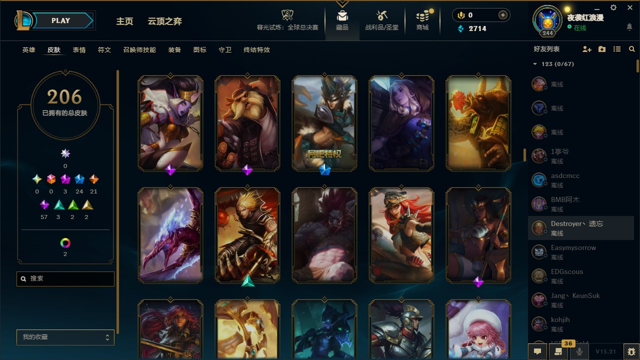 【11092671】3神话 24限定 21传说 57史诗 206皮肤 7炫彩 167英雄 可二次 可修改实名 【赛季限定皮】:胜利枪神 格雷福斯,胜利女神 奥莉安娜,胜利之剑 亚托克斯【冠军限定系列】:S1FNC 库奇,S2 暗杀星 努努,S3 SKT T1 薇恩,S4 SSW 图奇,S6 SKT T1 娜美【冰雪节限定】:阿木木:“主人不要我了”,冰雪节 辛吉德,胡桃夹子 萨科,平安夜女神 娑