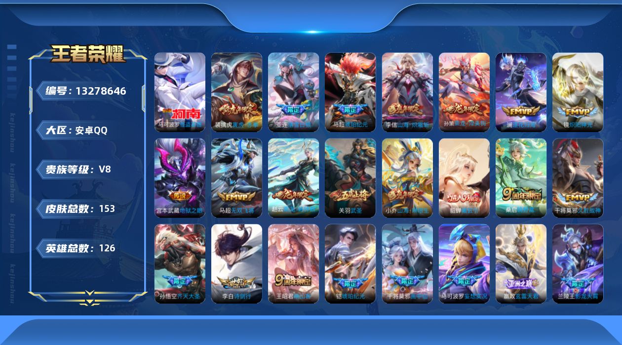 【11093756】【可二次】【QQ(安卓)】星界游侠 画中仙 影龙天霄 鹰眼统帅 水晶猎龙者 晚萤 地狱之眼 星夜王子 圣诞老人 紫霞仙子 炽弈燎原 燃音魔法 乘龙·淬吴钩 末日机甲 雪上飞焰 诗剑行 金属风暴 古海寻踪 摇滚巨星 妄想实况 齐天大圣 冰雪圆舞曲 探海日记 白晶晶 鹤归松栖 逐花归海 魅力维加斯 浮梦罗烟 久胜战神 玉兔公主 冰锋战神 地狱燃心 牧神诗旅 谪仙醉月 驭风魔法 炽