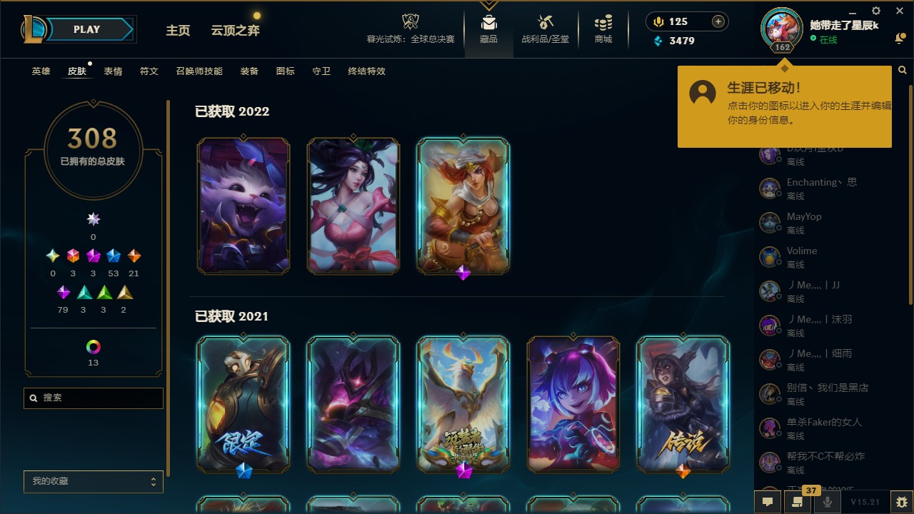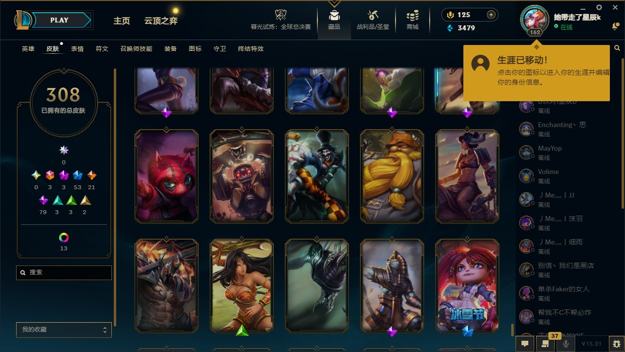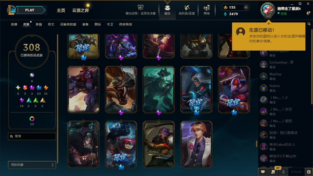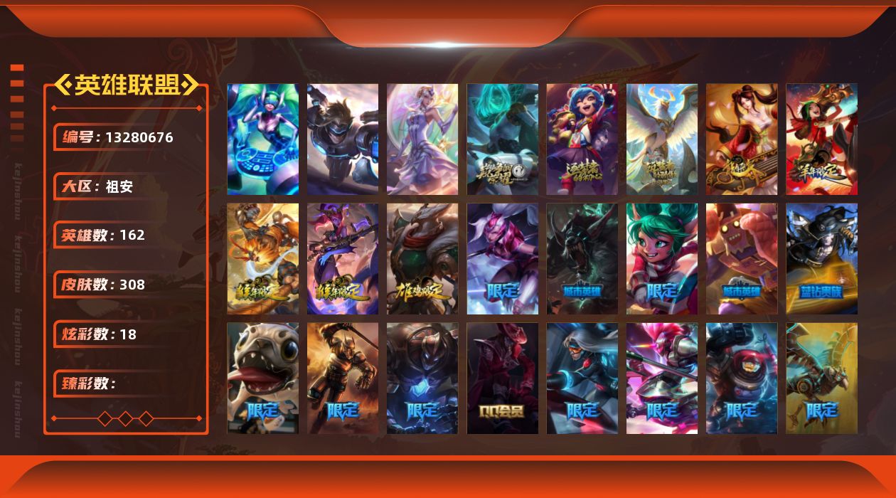 【11094135】3终极 3神话 53限定 21传说 79史诗 308皮肤 18炫彩 162英雄 可二次 可修改实名 【限定】:奥斯曼大帝 泰达米尔【赛季限定皮】:胜利女神 莫甘娜,胜利女神 希维尔,胜利之树 茂凯,胜利枪神 格雷福斯,胜利女神 奥莉安娜,胜利机器人 布里茨【冠军限定系列】:S13 T1 李青,S1FNC 酒桶,S2 暗杀星 努努,S2 暗杀星 慎,S3 SKT T1 劫,S3