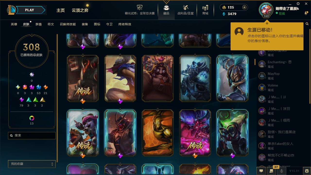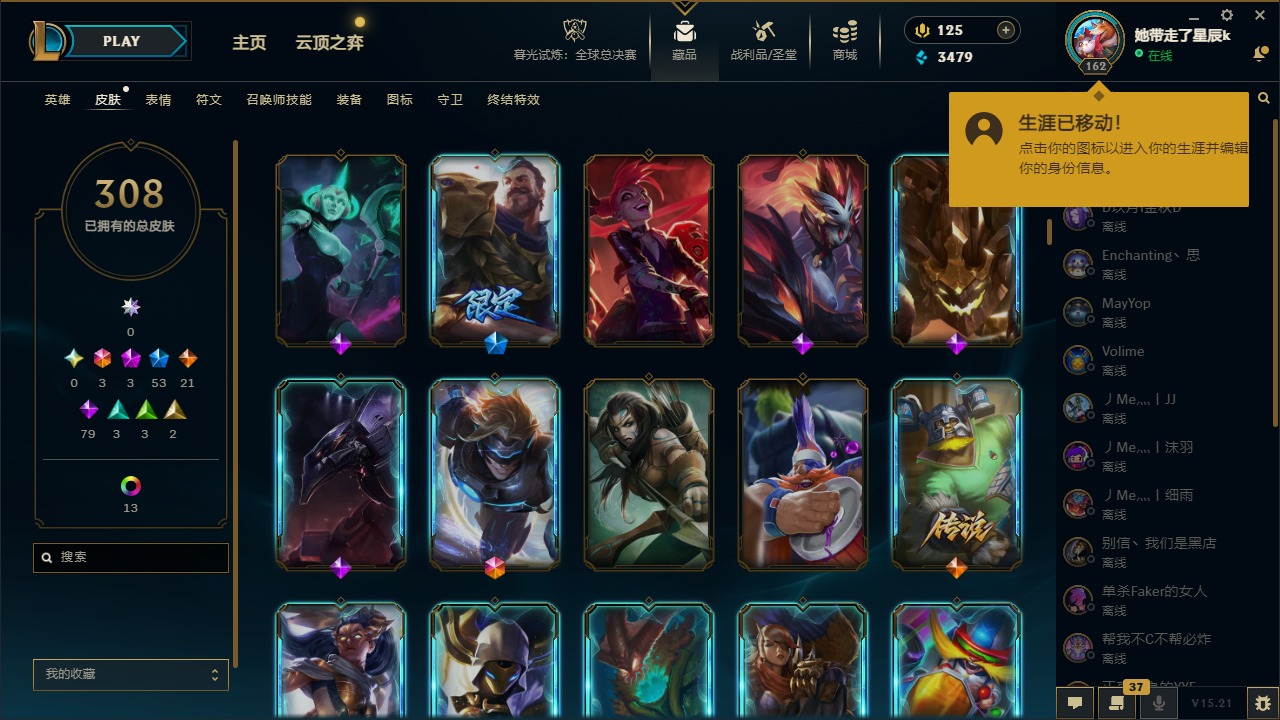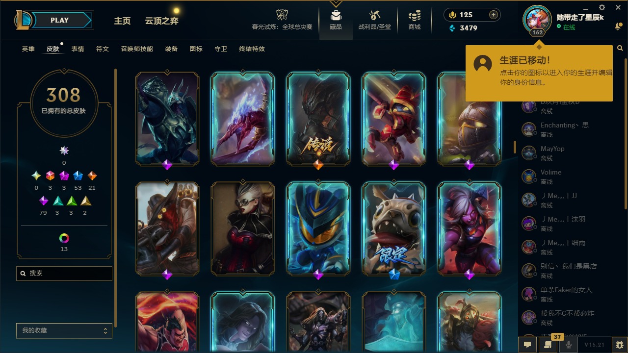 【11094135】3终极 3神话 53限定 21传说 79史诗 308皮肤 18炫彩 162英雄 可二次 可修改实名 【限定】:奥斯曼大帝 泰达米尔【赛季限定皮】:胜利女神 莫甘娜,胜利女神 希维尔,胜利之树 茂凯,胜利枪神 格雷福斯,胜利女神 奥莉安娜,胜利机器人 布里茨【冠军限定系列】:S13 T1 李青,S1FNC 酒桶,S2 暗杀星 努努,S2 暗杀星 慎,S3 SKT T1 劫,S3