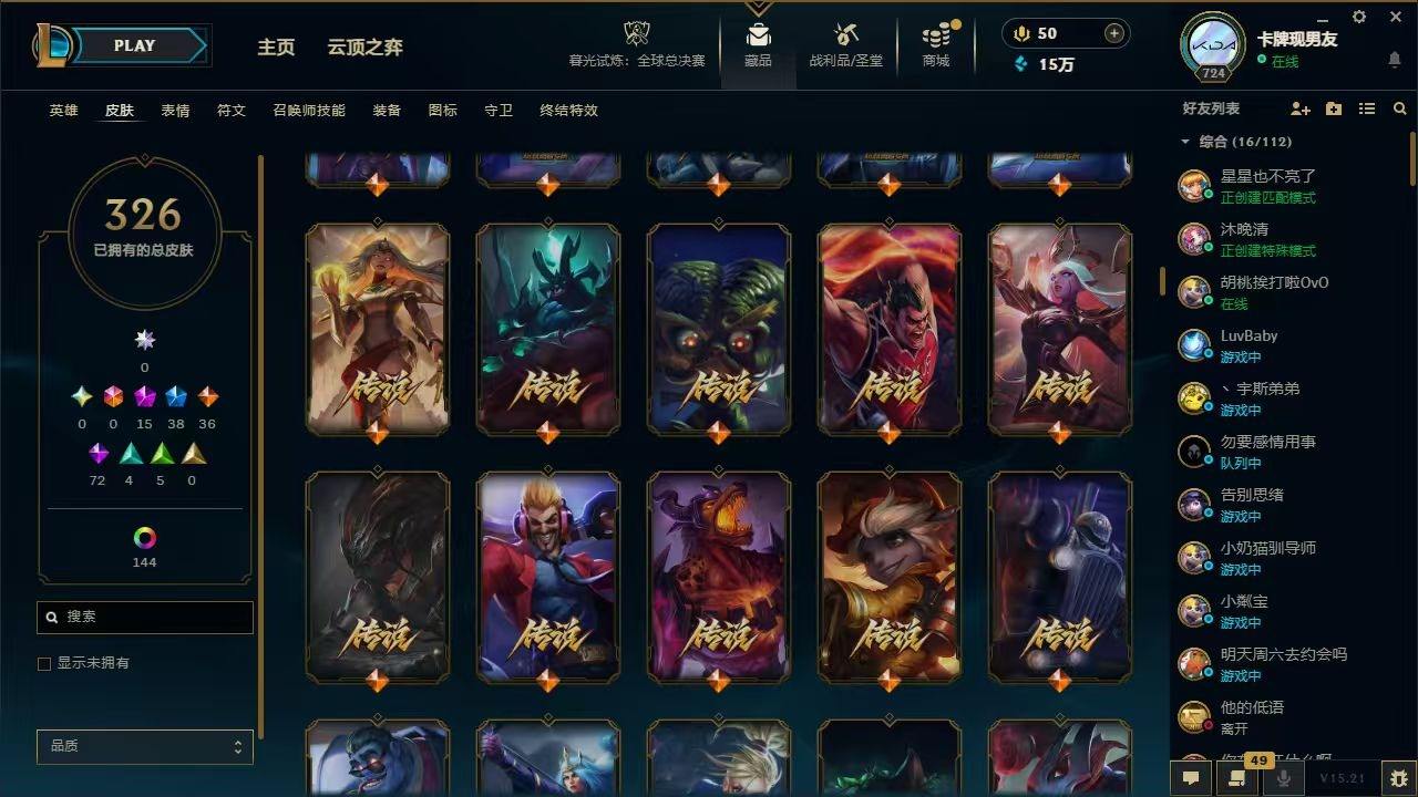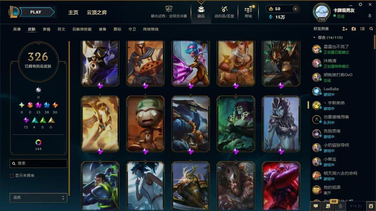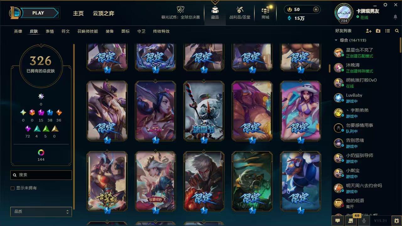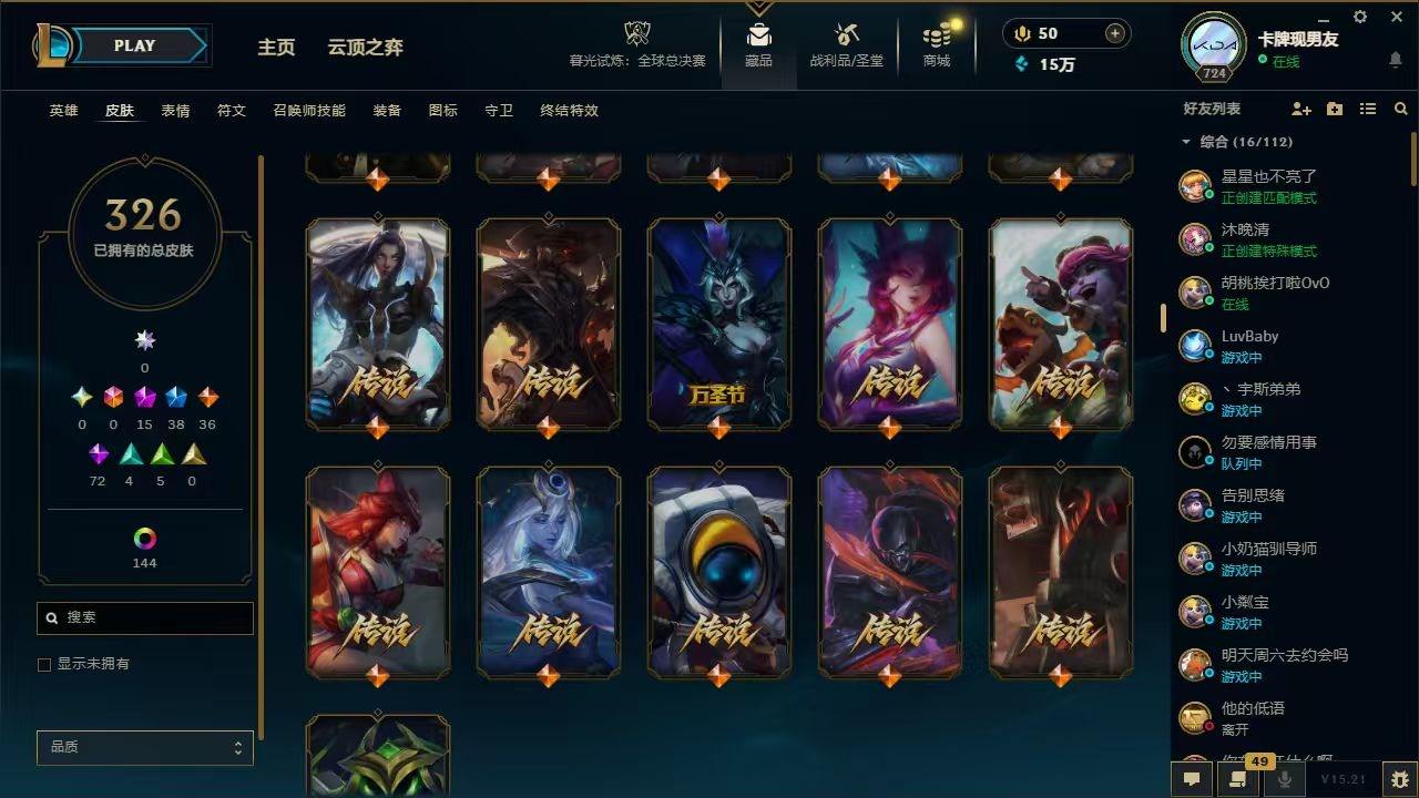 【11094617】[13283641]15神话 38限定 36传说 72史诗 326皮肤 182炫彩 171英雄 可二次 可修改实名 【至臻】:至臻 墨之影武者 亚索,至臻 暗星女王 黛安娜,至臻 K/DA 卡莎,至臻 玉剑传说 武剑仙,至臻 未来战士 锤石,至臻 未来战士 卢锡安,至臻 灵能特工 伊泽瑞尔,至臻 神凰行者 烈羽焰凰 霞,至臻 西部魔影 泰隆【海克斯】:海克斯 吉格斯,海克斯