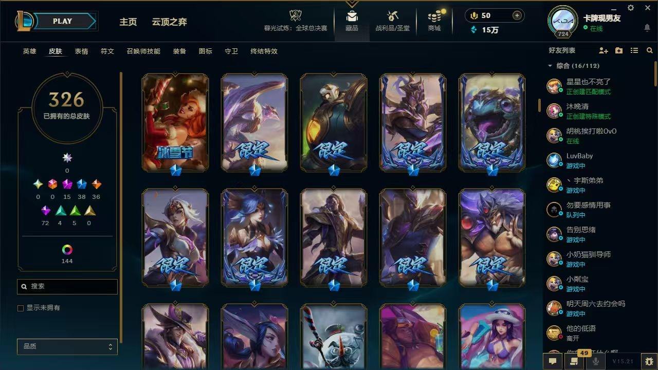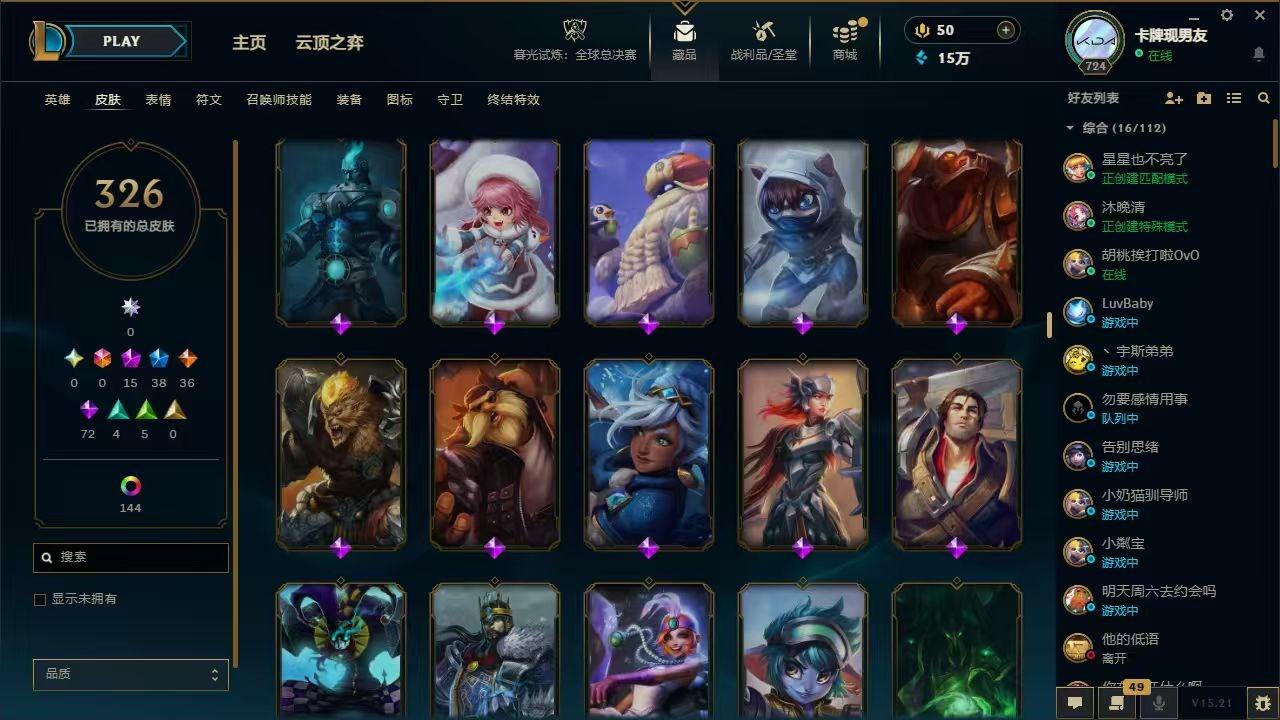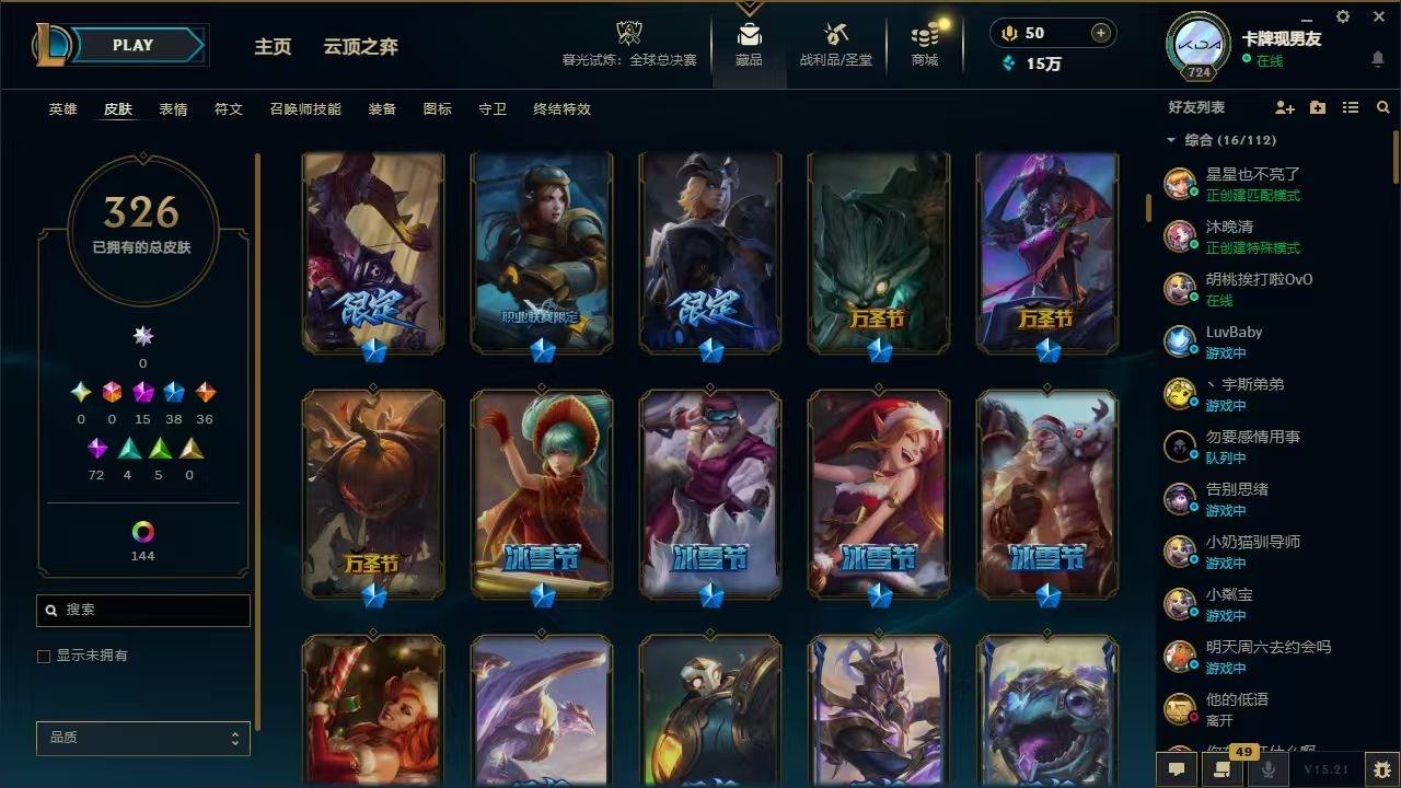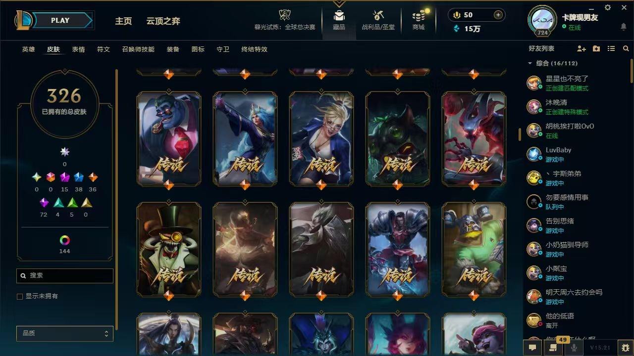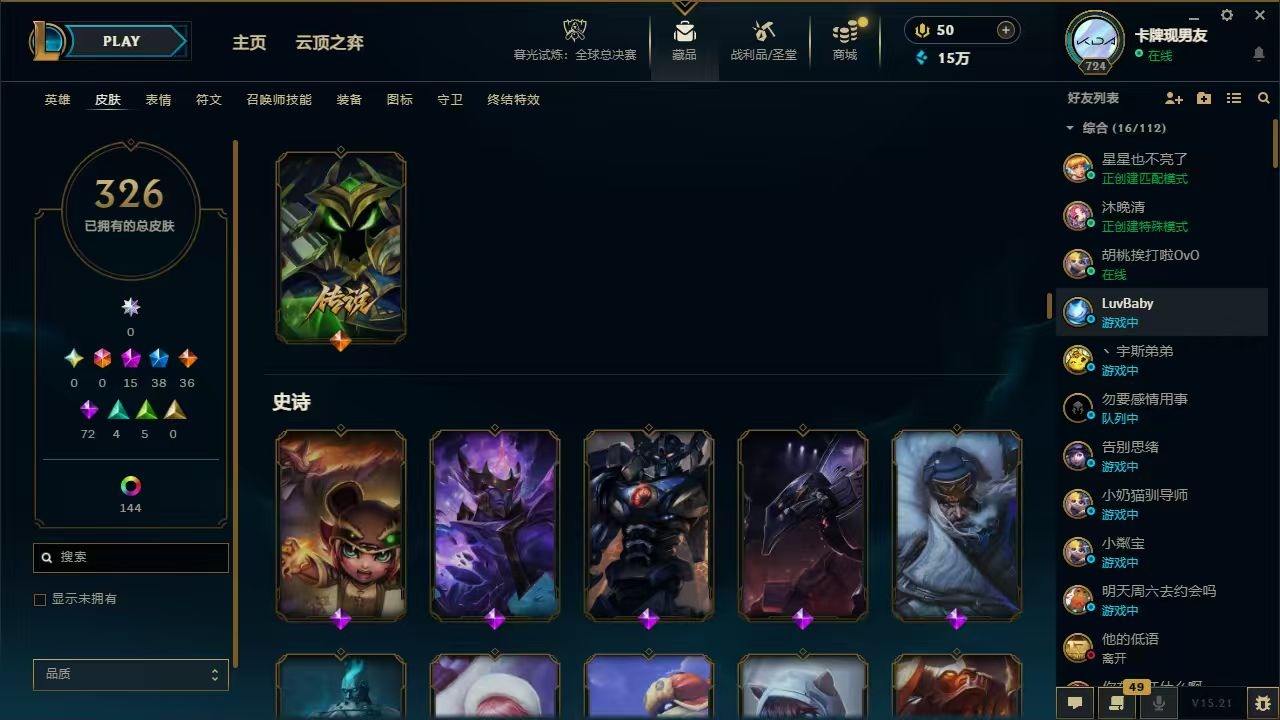 【11094617】[13283641]15神话 38限定 36传说 72史诗 326皮肤 182炫彩 171英雄 可二次 可修改实名 【至臻】:至臻 墨之影武者 亚索,至臻 暗星女王 黛安娜,至臻 K/DA 卡莎,至臻 玉剑传说 武剑仙,至臻 未来战士 锤石,至臻 未来战士 卢锡安,至臻 灵能特工 伊泽瑞尔,至臻 神凰行者 烈羽焰凰 霞,至臻 西部魔影 泰隆【海克斯】:海克斯 吉格斯,海克斯