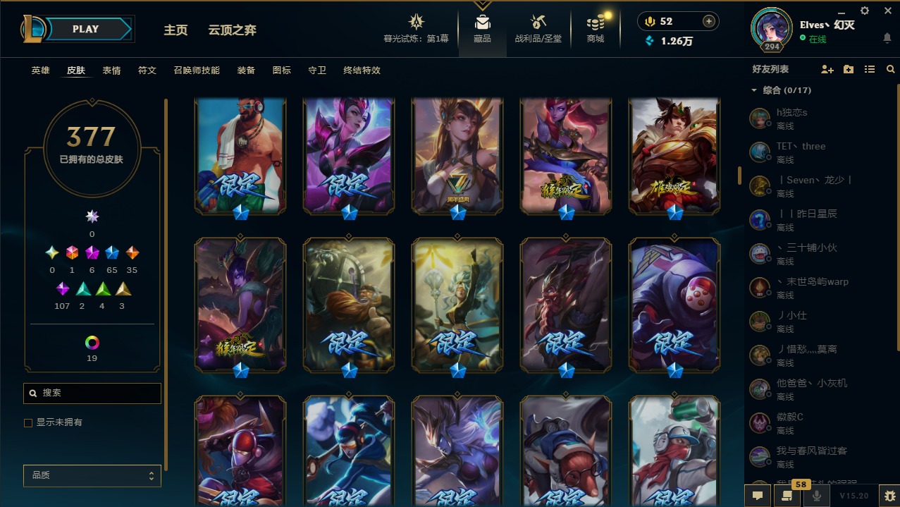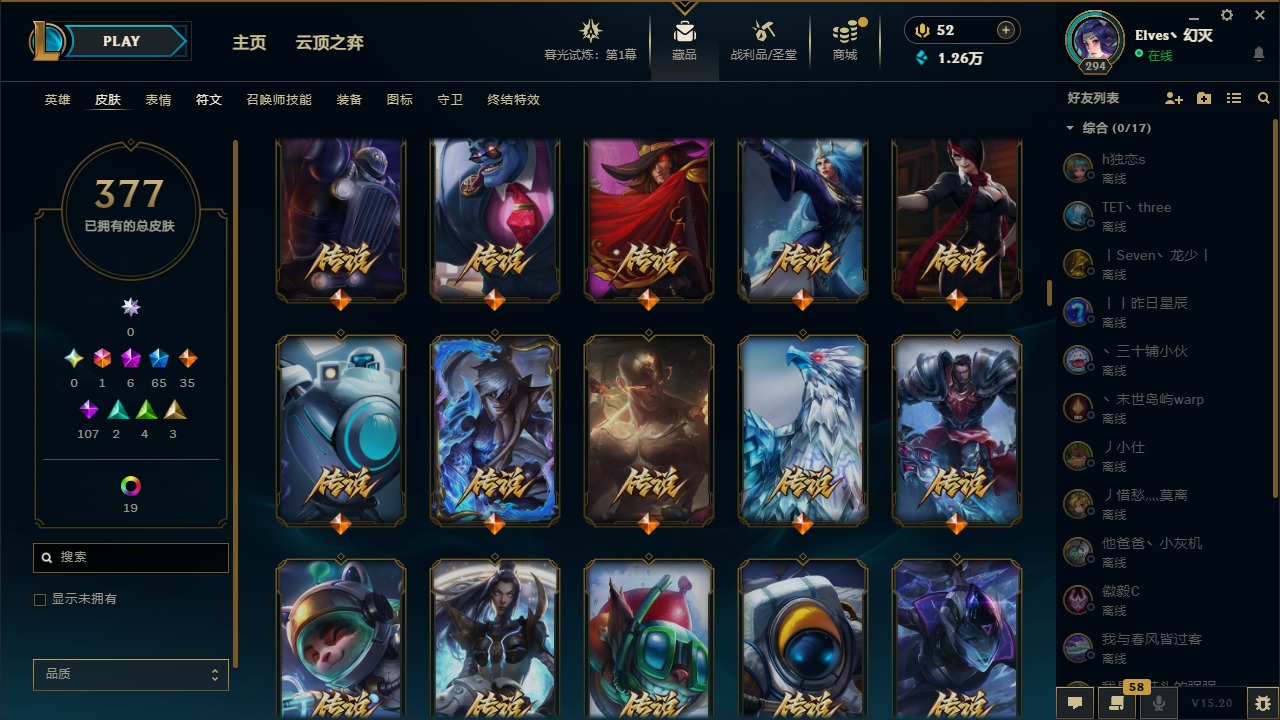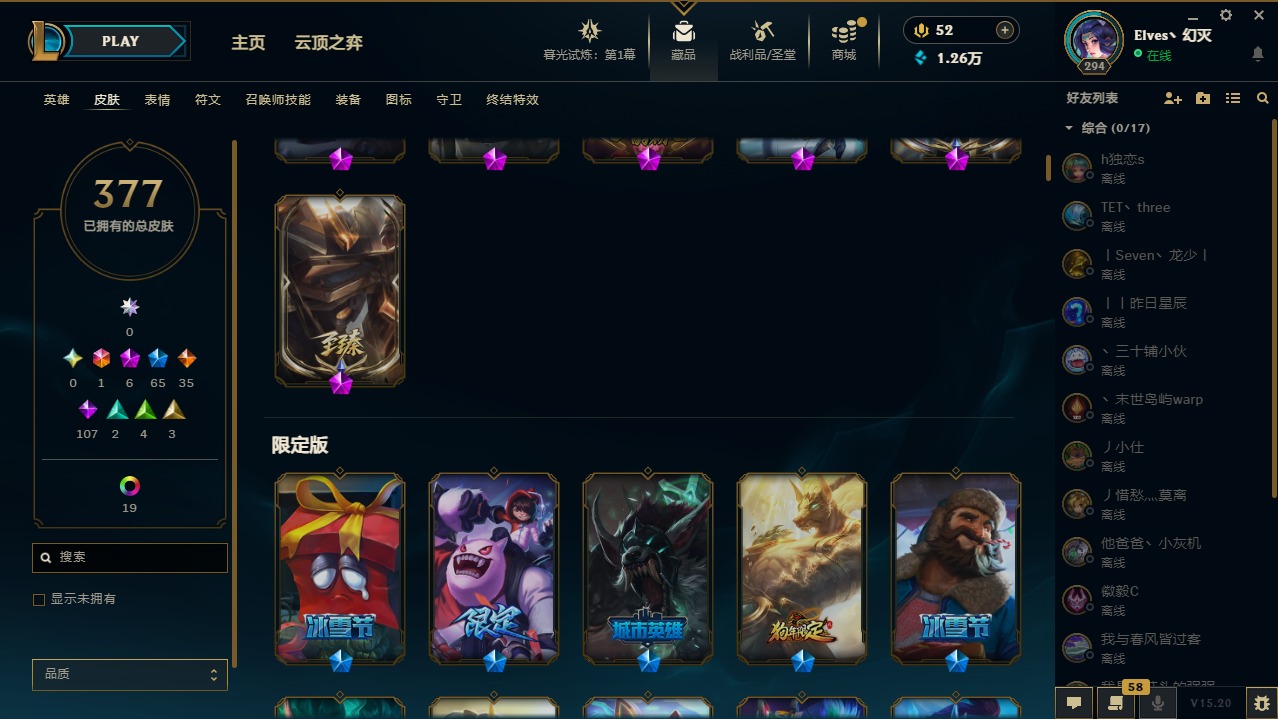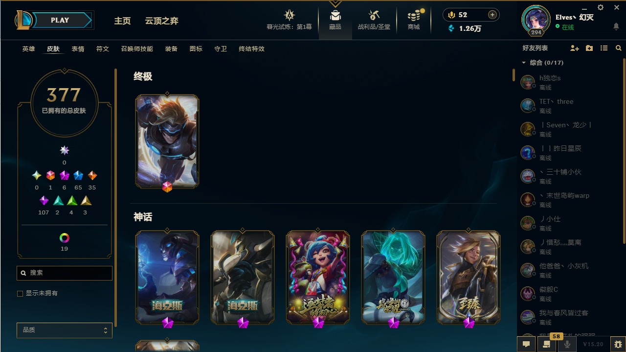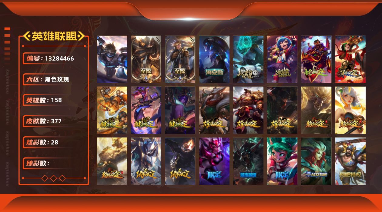【11094810】1终极 6神话 65限定 35传说 107史诗 377皮肤 28炫彩 158英雄 可二次 可修改实名 【至臻】:至臻 王国机神玄武 盖伦,至臻 灵能特工 伊泽瑞尔【海克斯】:海克斯 玛尔扎哈【赛季限定皮】:胜利枪神 格雷福斯,胜利女神 奥莉安娜,胜利之剑 亚托克斯,胜利枪神 卢锡安,胜利机器人 布里茨【冠军限定系列】:S1FNC 酒桶,S1FNC 迦娜,S2 暗杀星 努努,S