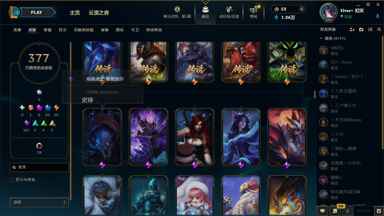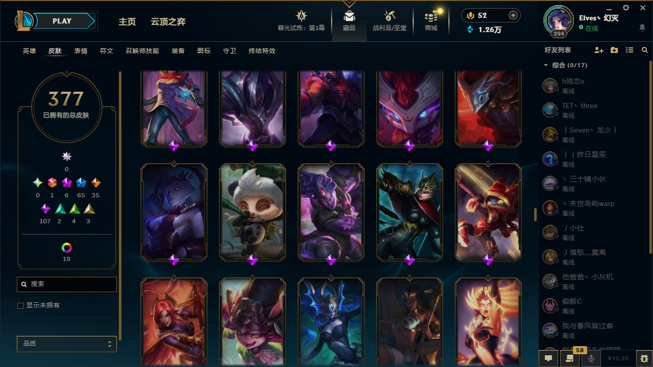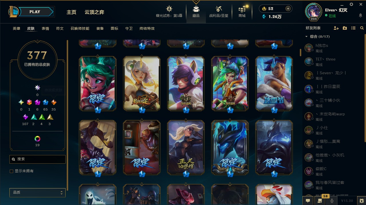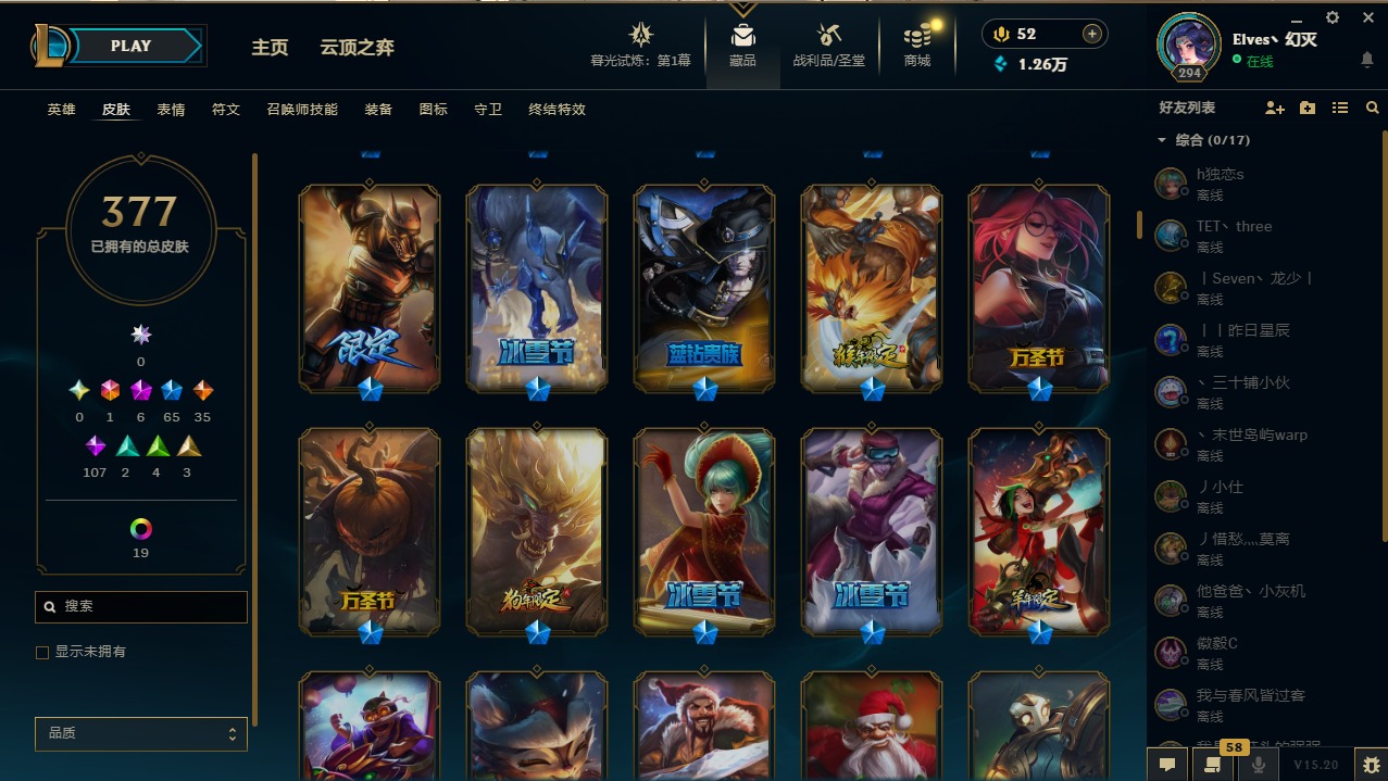 【11094810】1终极 6神话 65限定 35传说 107史诗 377皮肤 28炫彩 158英雄 可二次 可修改实名 【至臻】:至臻 王国机神玄武 盖伦,至臻 灵能特工 伊泽瑞尔【海克斯】:海克斯 玛尔扎哈【赛季限定皮】:胜利枪神 格雷福斯,胜利女神 奥莉安娜,胜利之剑 亚托克斯,胜利枪神 卢锡安,胜利机器人 布里茨【冠军限定系列】:S1FNC 酒桶,S1FNC 迦娜,S2 暗杀星 努努,S