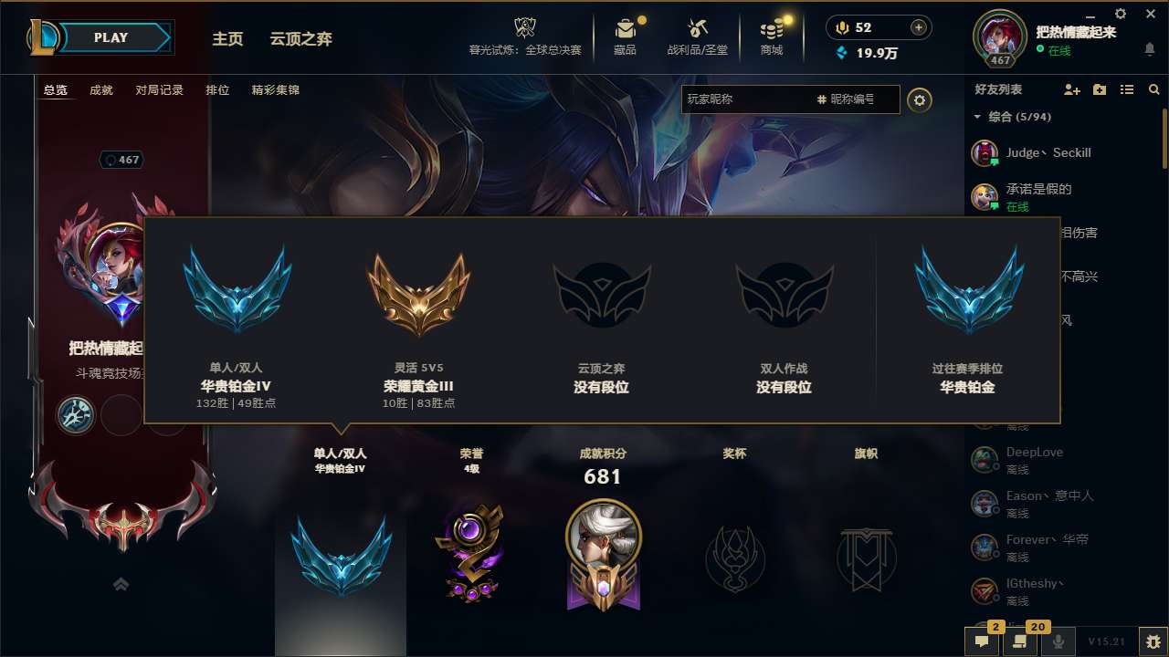 游戏区服:英雄联盟 / 电信 / 暗影岛