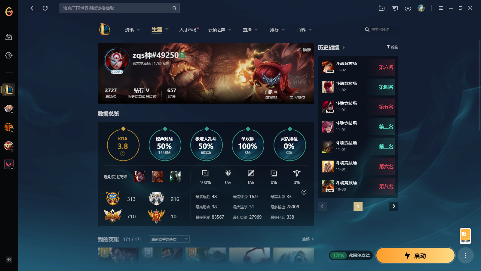 游戏区服:英雄联盟 / 网通 / 弗雷尔卓德