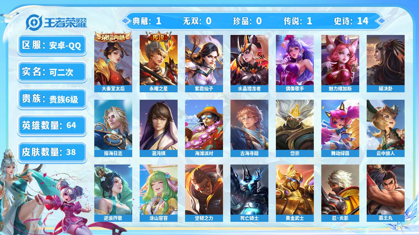 游戏区服:王者荣耀 / 安卓系统 / QQ账号