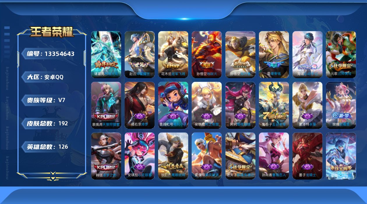游戏区服:王者荣耀 / 安卓系统 / QQ账号