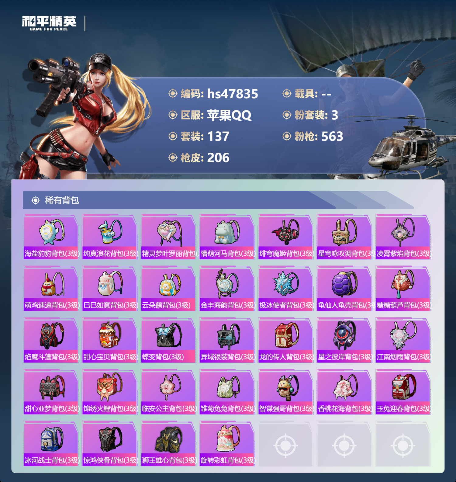 游戏区服:和平精英 / 苹果系统 / QQ帐号