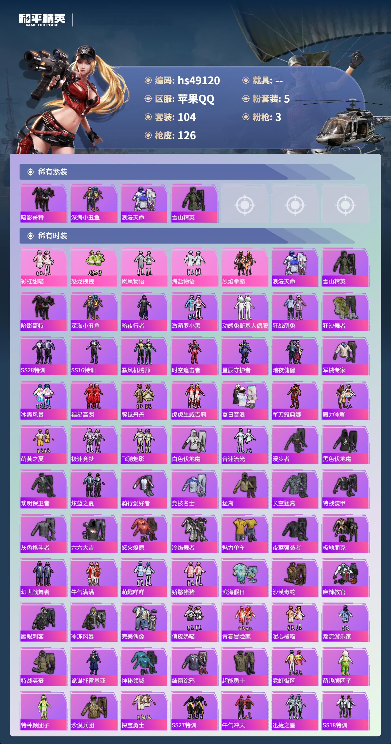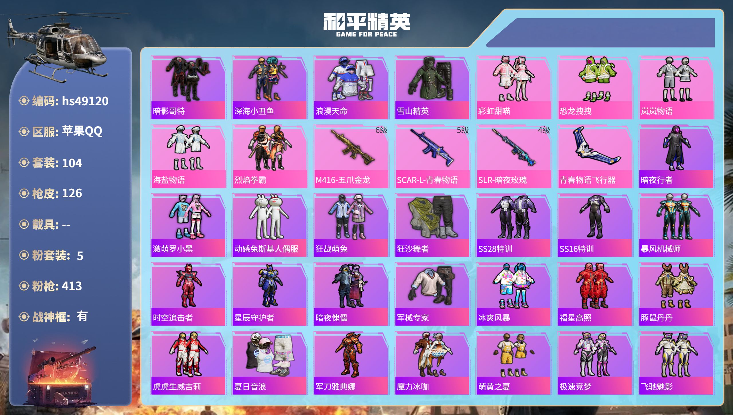 游戏区服:和平精英 / 苹果系统 / QQ帐号