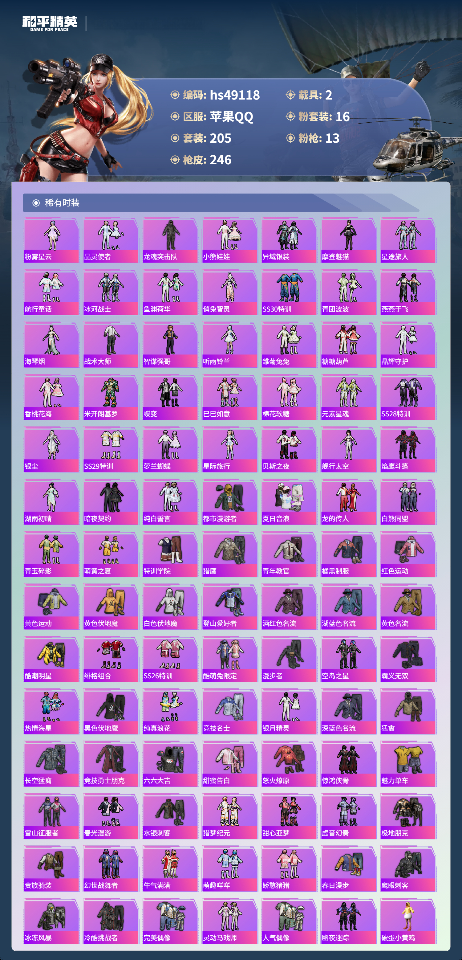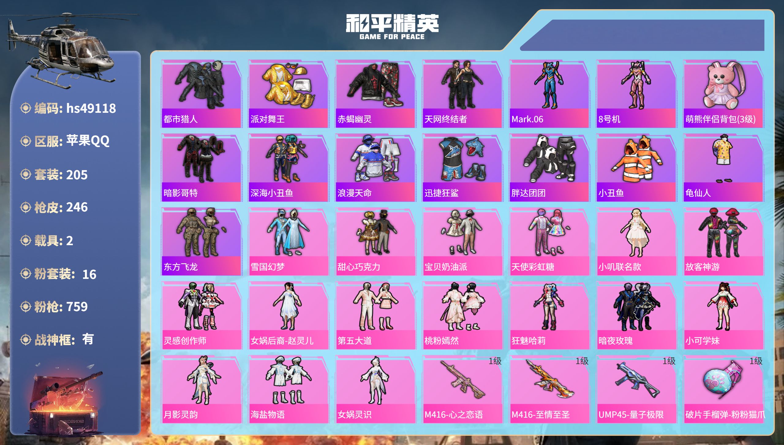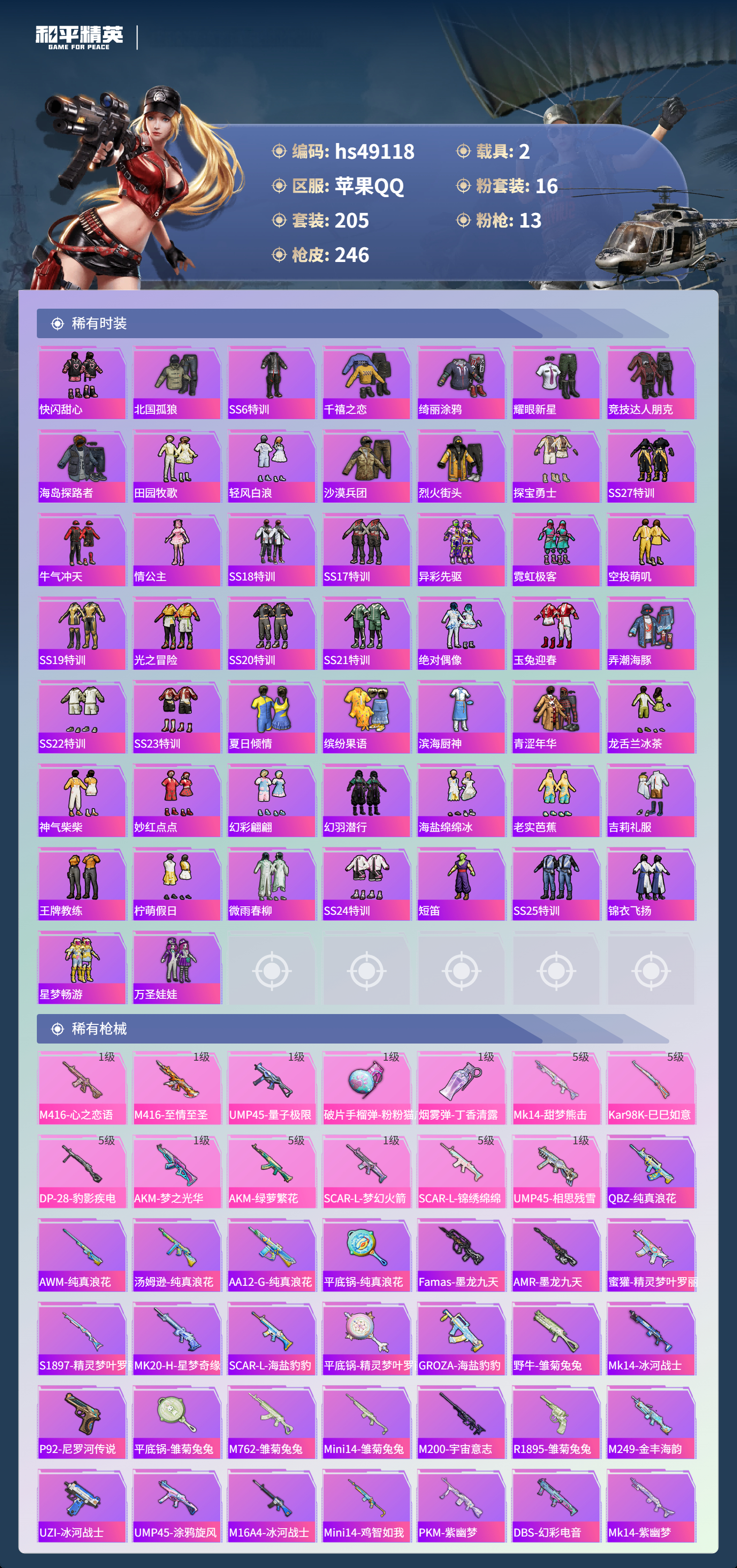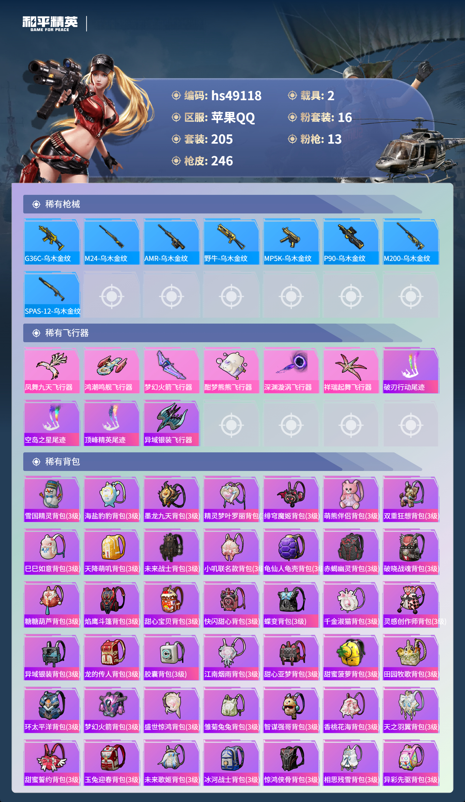 【10286】【不可二次】【苹果QQ】合金龙骨蓝色 龟仙人 AKM-绿萝繁花 水银刺客 雪国梦幻 漫步者 都市猎人 小叽联名款 东方飞龙 赤蝎幽灵 放客神游 M416-至情至圣 海盐物语 UMP45-量子极限 M416-心之恋语 深海小丑鱼 浪漫天命 梦幻火箭飞行器 胖达团团 纯白誓言 破片手榴弹-粉粉猫爪 SCAR-L-梦幻火箭 迅捷狂鲨 暗夜契约 SCAR-L梦幻火箭 甜心巧克力 狂沙舞者