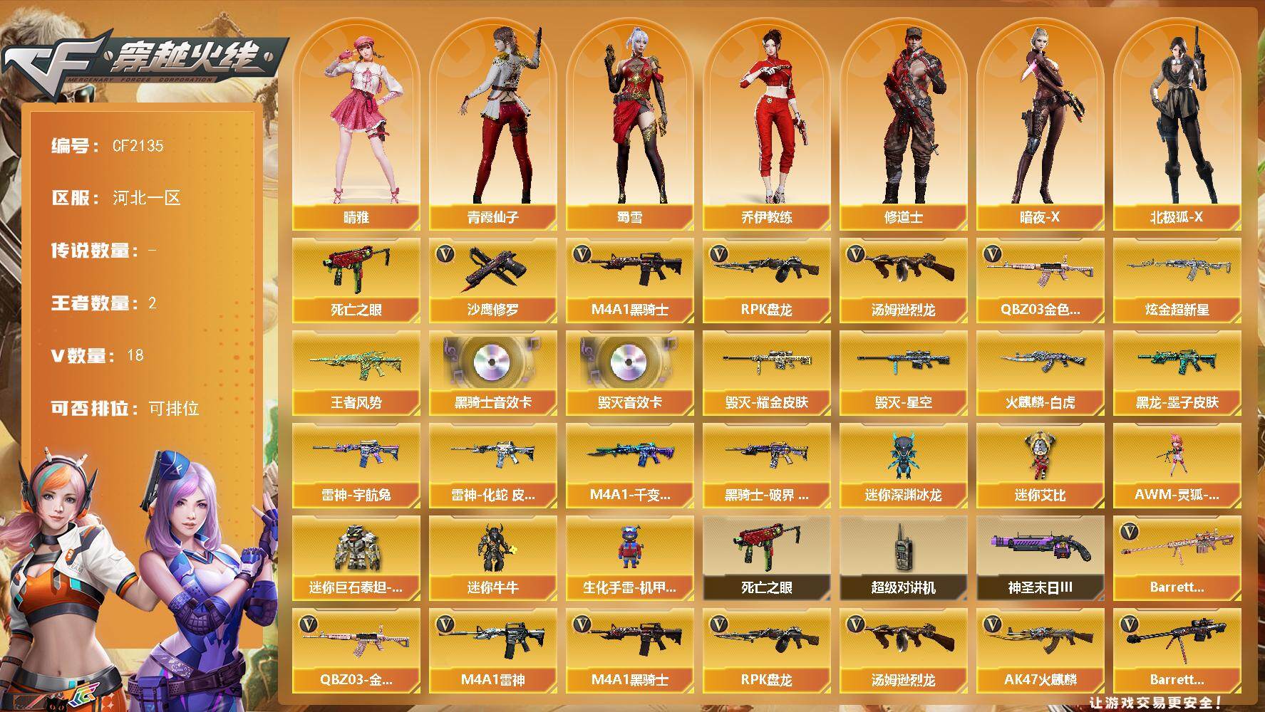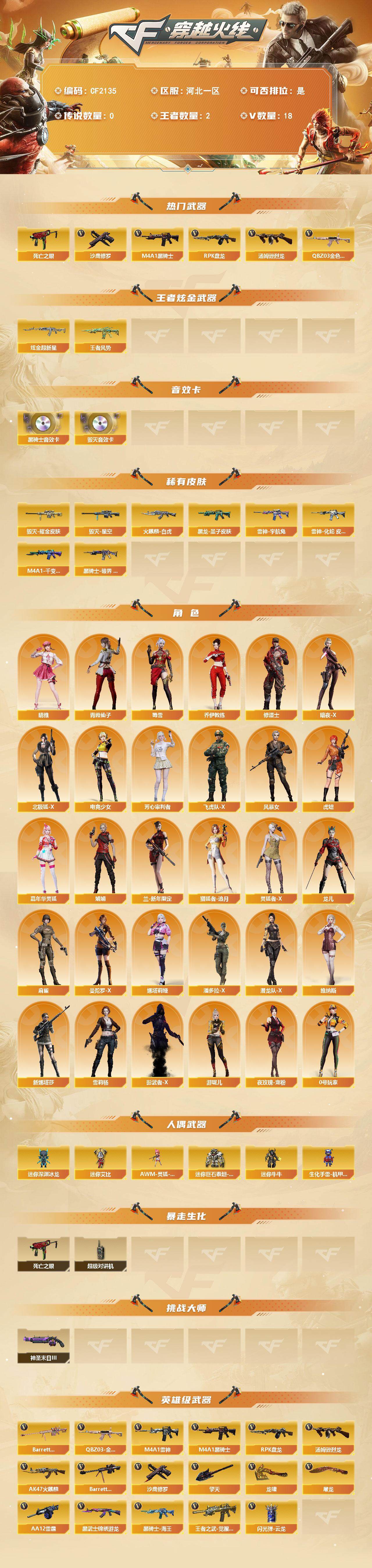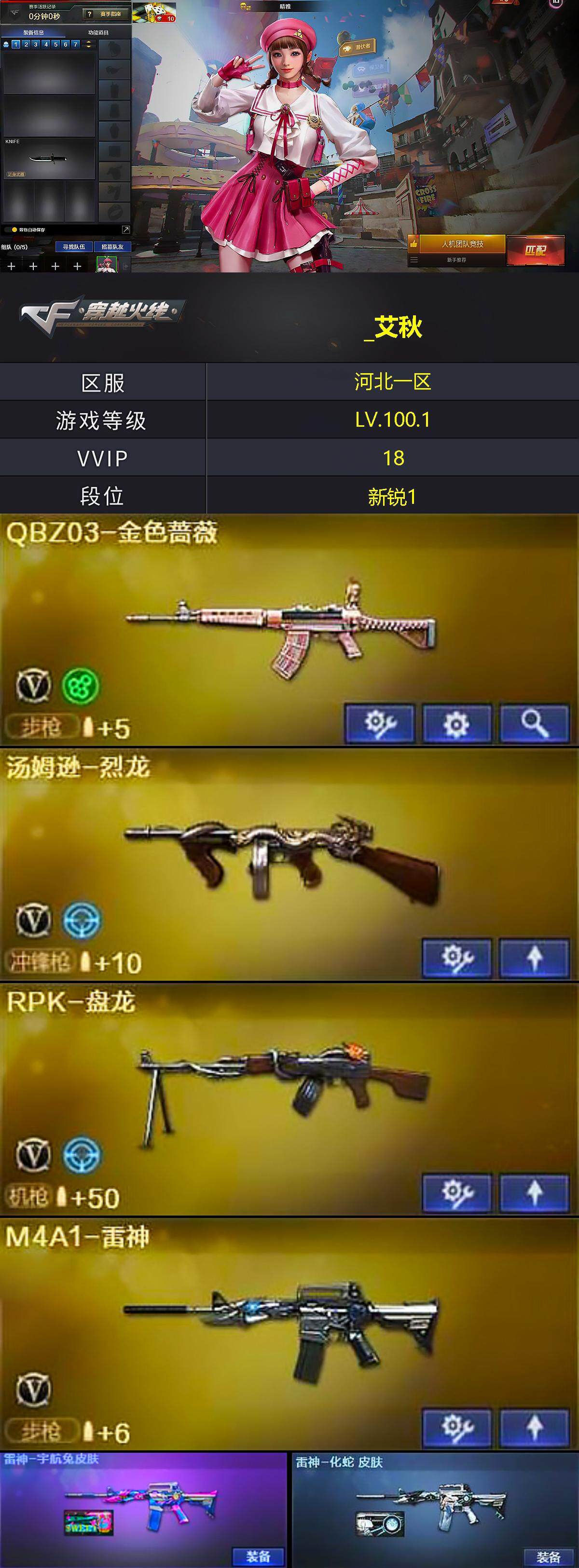 【10860】【10860】[13725221]河北一区-18V-2王者-1炫金【双全号 QBZ03-金色蔷薇,死亡之眼,M4A1-黑骑士,汤姆逊-烈龙,RP