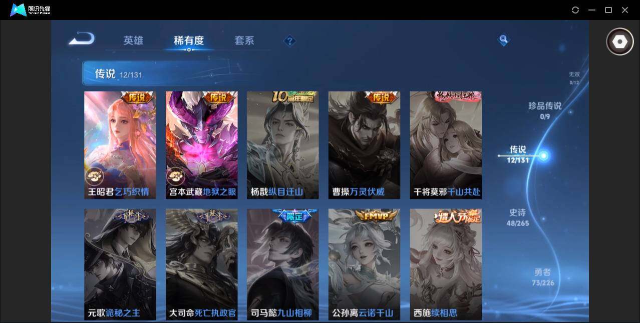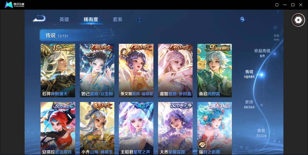 [13757475][妹子号 女号 瑶妹]: 可修改 贵族等级: V7 英雄数: 125 皮肤数: 160 荣耀水晶: 天鹅之梦 传说皮: 地狱之眼,乞巧织情,挚爱花嫁,山海·琳琅生,追逃游戏(安琪拉),神树通天 限定皮: 李小龙,游园惊梦,美猴王,时之祈愿-瑶,时之奇旅-妲己,星穹之声,山海·碧波行,鸣野蒿,逐霄战戟,愿照·众生和,愿照·岁时盈,愿照·福禄聚