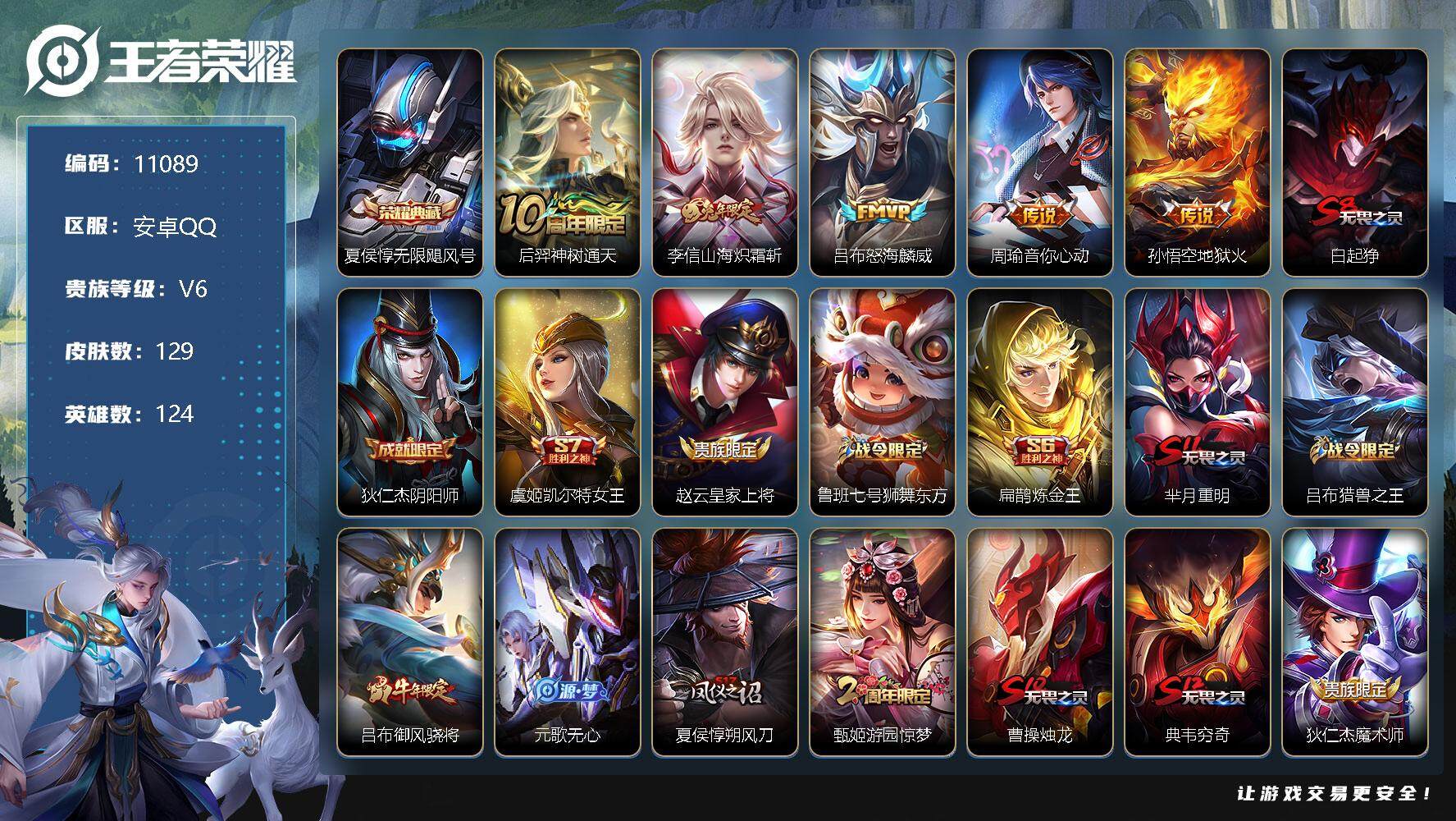 游戏区服:王者荣耀 / 安卓系统 / QQ账号