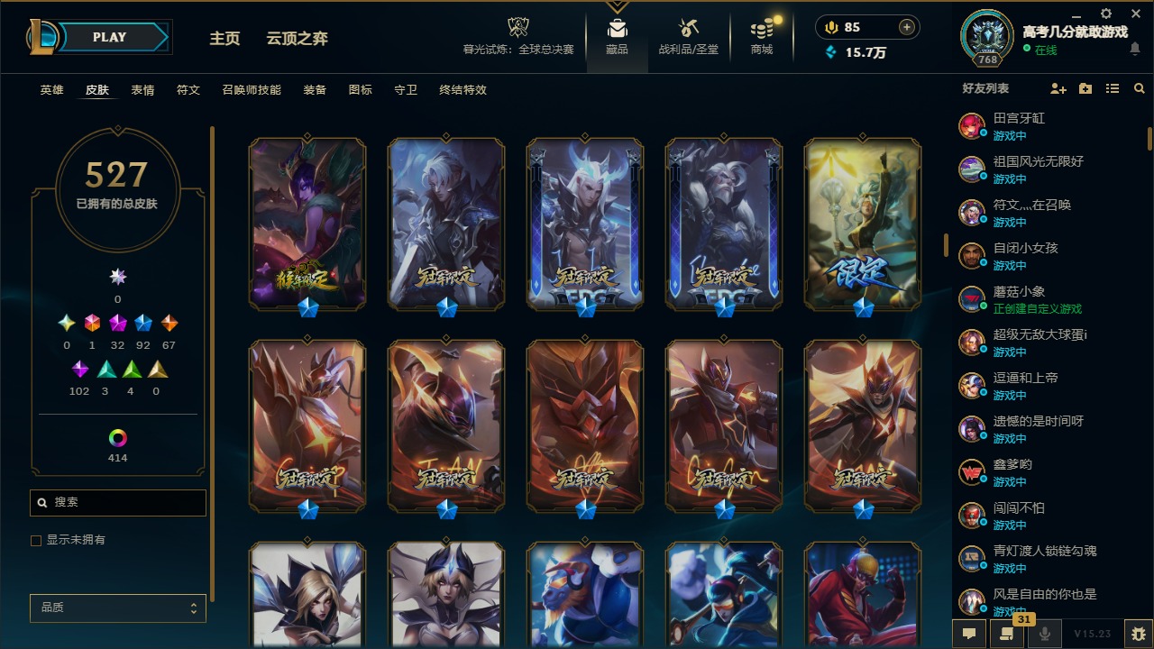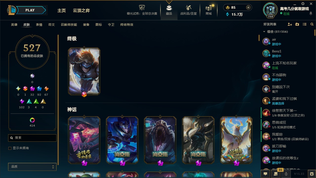 【92083】1终极 32神话 92限定 67传说 102史诗 527皮肤 458炫彩 172英雄 可二次 可修改实名 【至臻】:至臻 腥红之月 亚托克斯(2022),至臻 未来战士 锤石(2022),至臻 K/DA 伊芙琳(2022),至臻 黑夜使者 李青(2022),至臻 心之钢 永恩,至臻 K/DA 伊芙琳,至臻 K/DA 卡莎,至臻 腥红之月 亚托克斯,至臻 电玩女神 凯特琳,至臻 未来