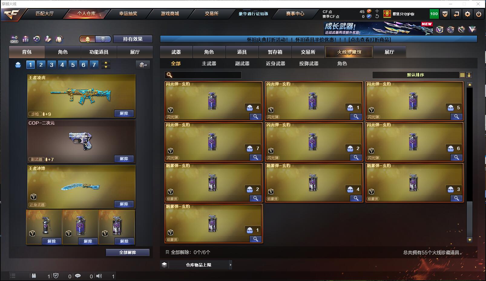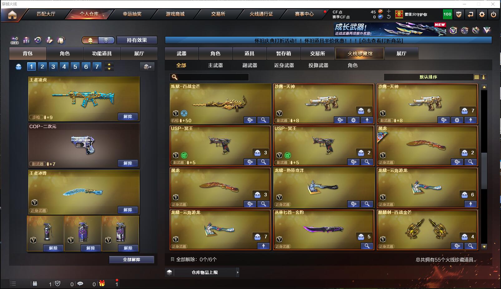 【45869】【45869】FWX5254/北部/山东一区/可排位/55V/臻选金狐套/传说星骇/幻神/幻神音效卡/王者风神/USP冥王/*2/G36C幻影/