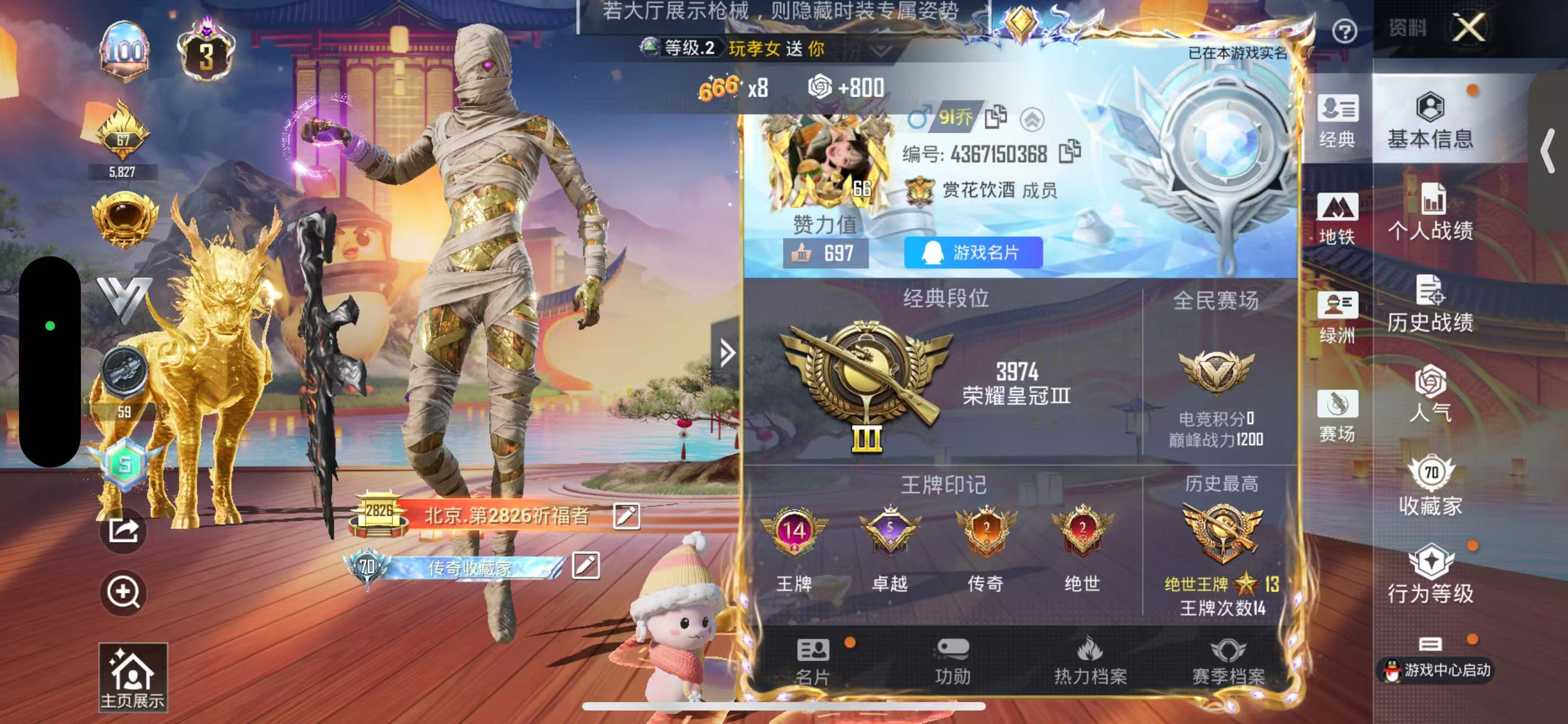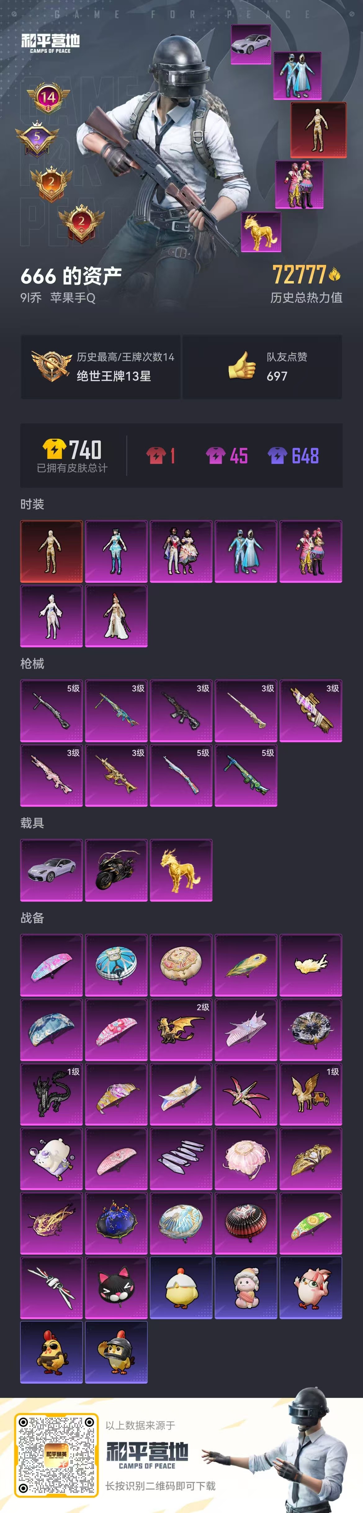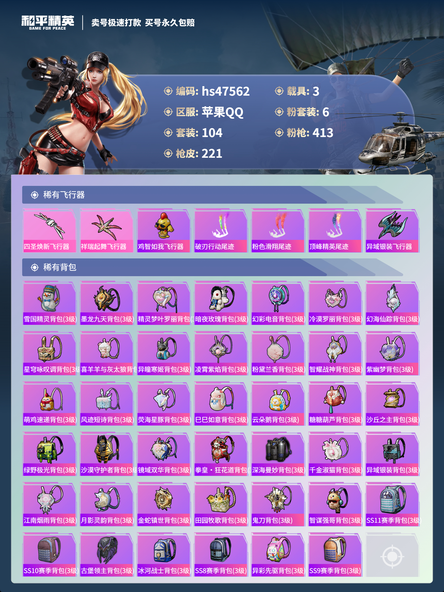 游戏区服:和平精英 / 苹果系统 / QQ帐号