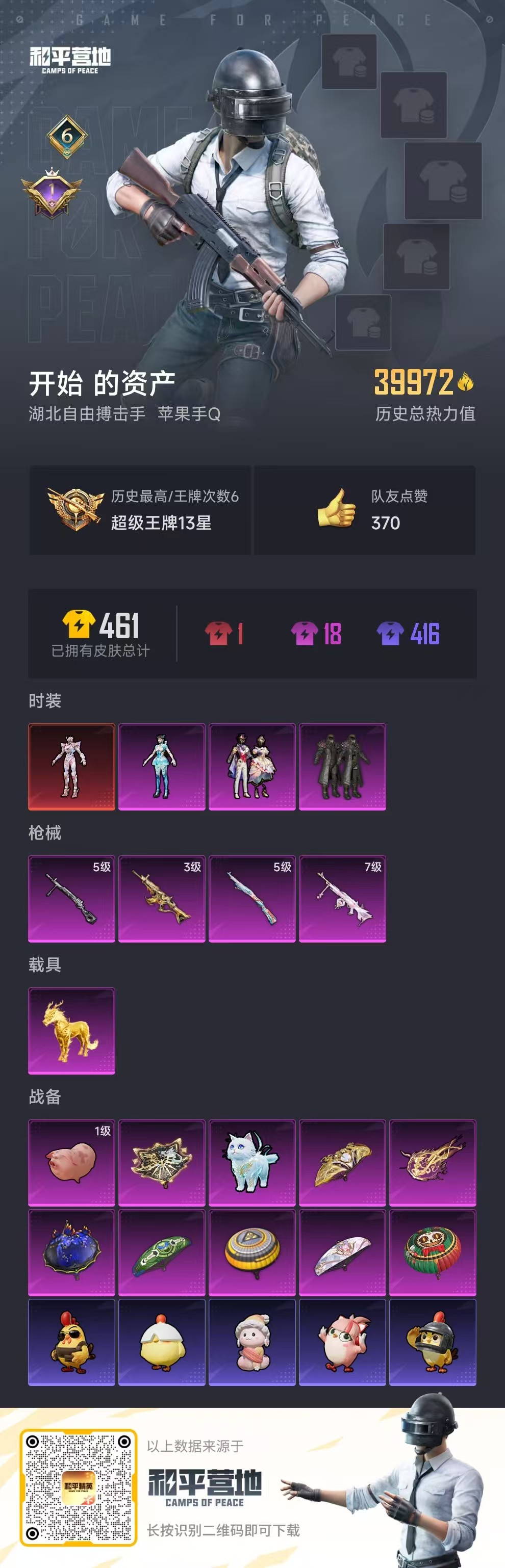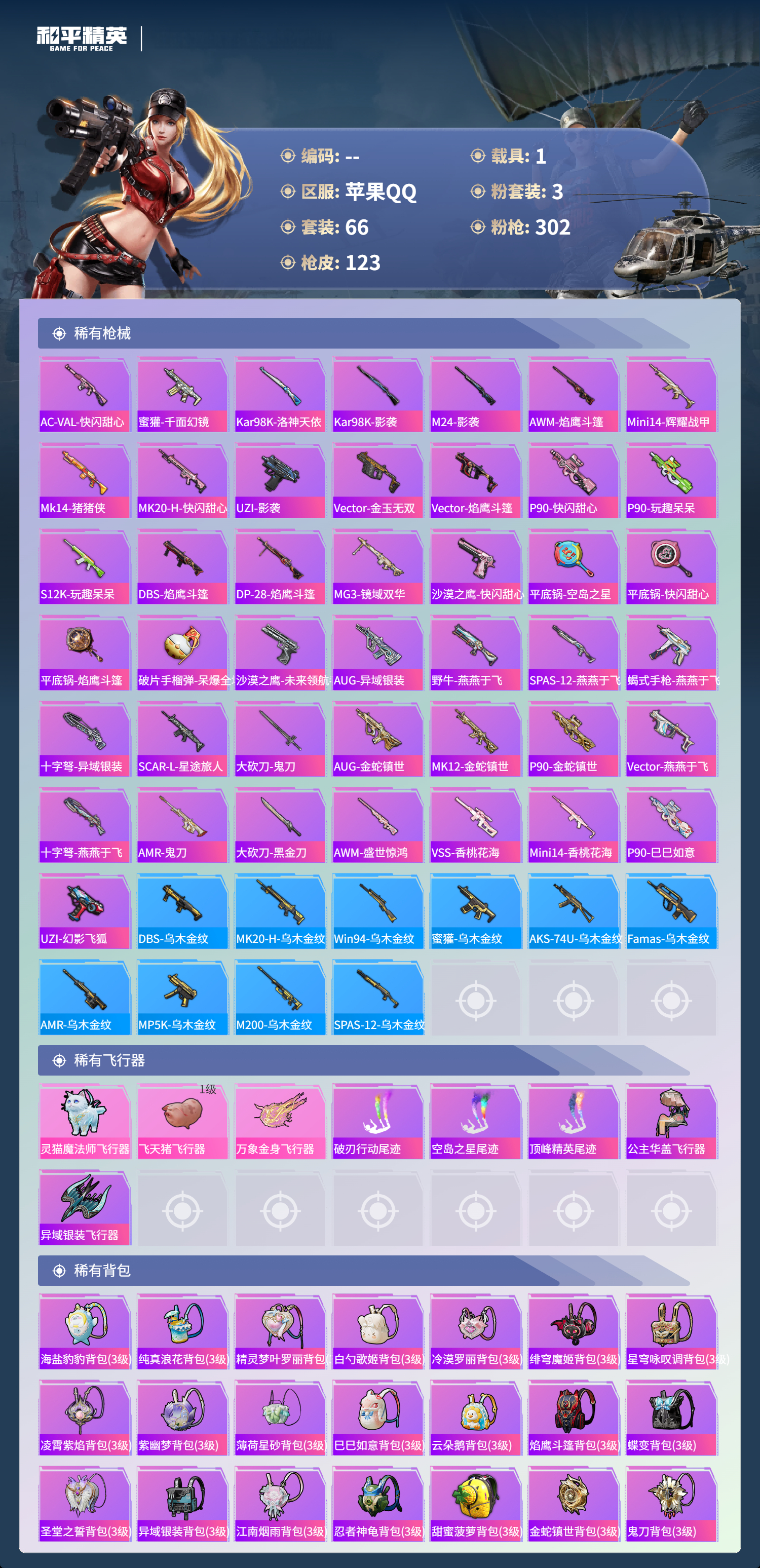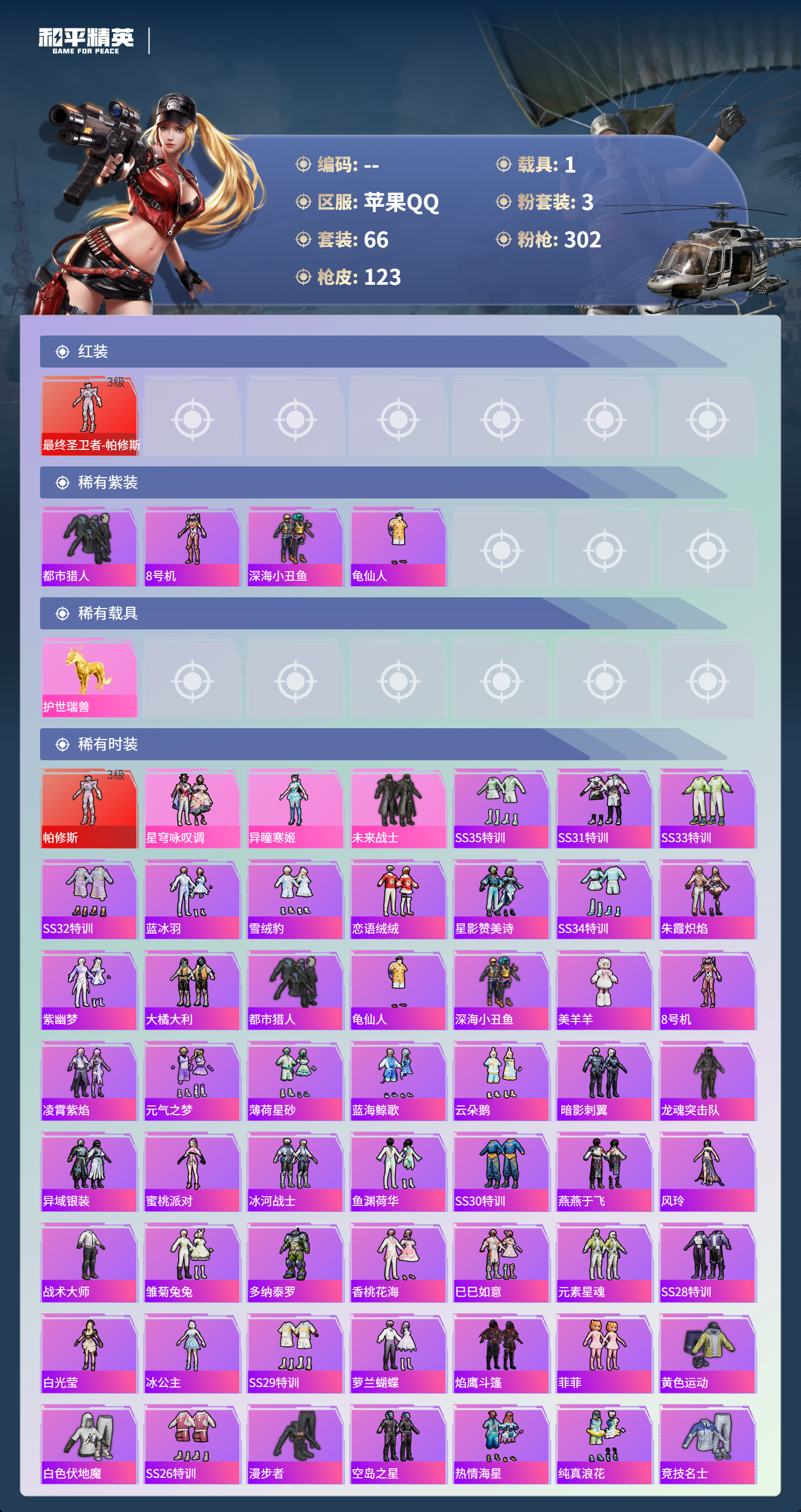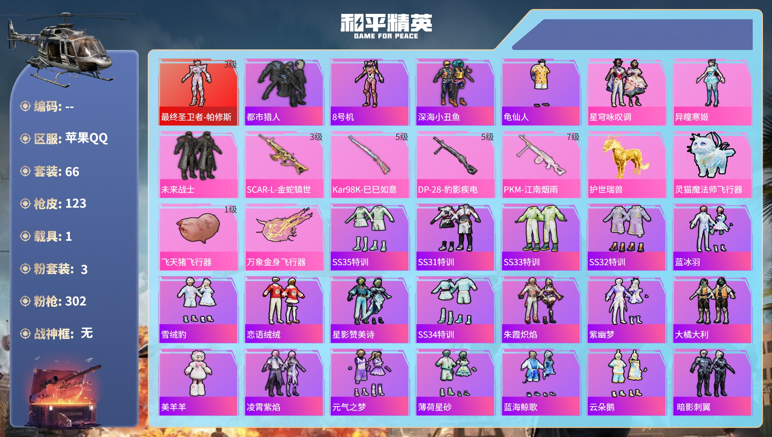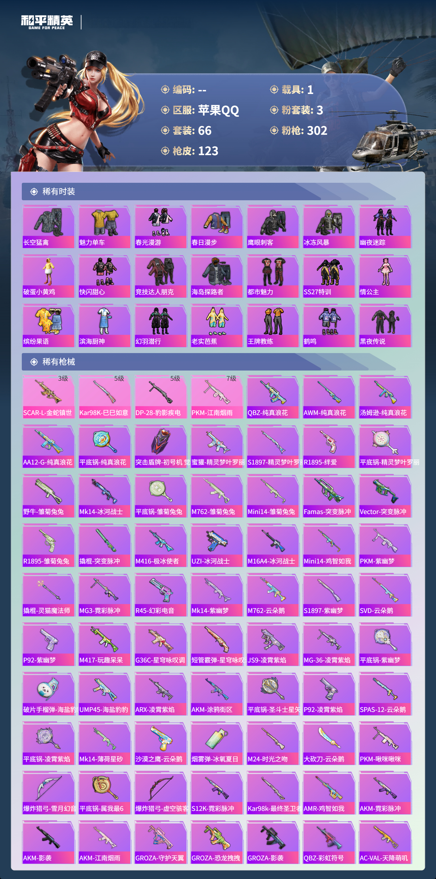 游戏区服:和平精英 / 苹果系统 / QQ帐号