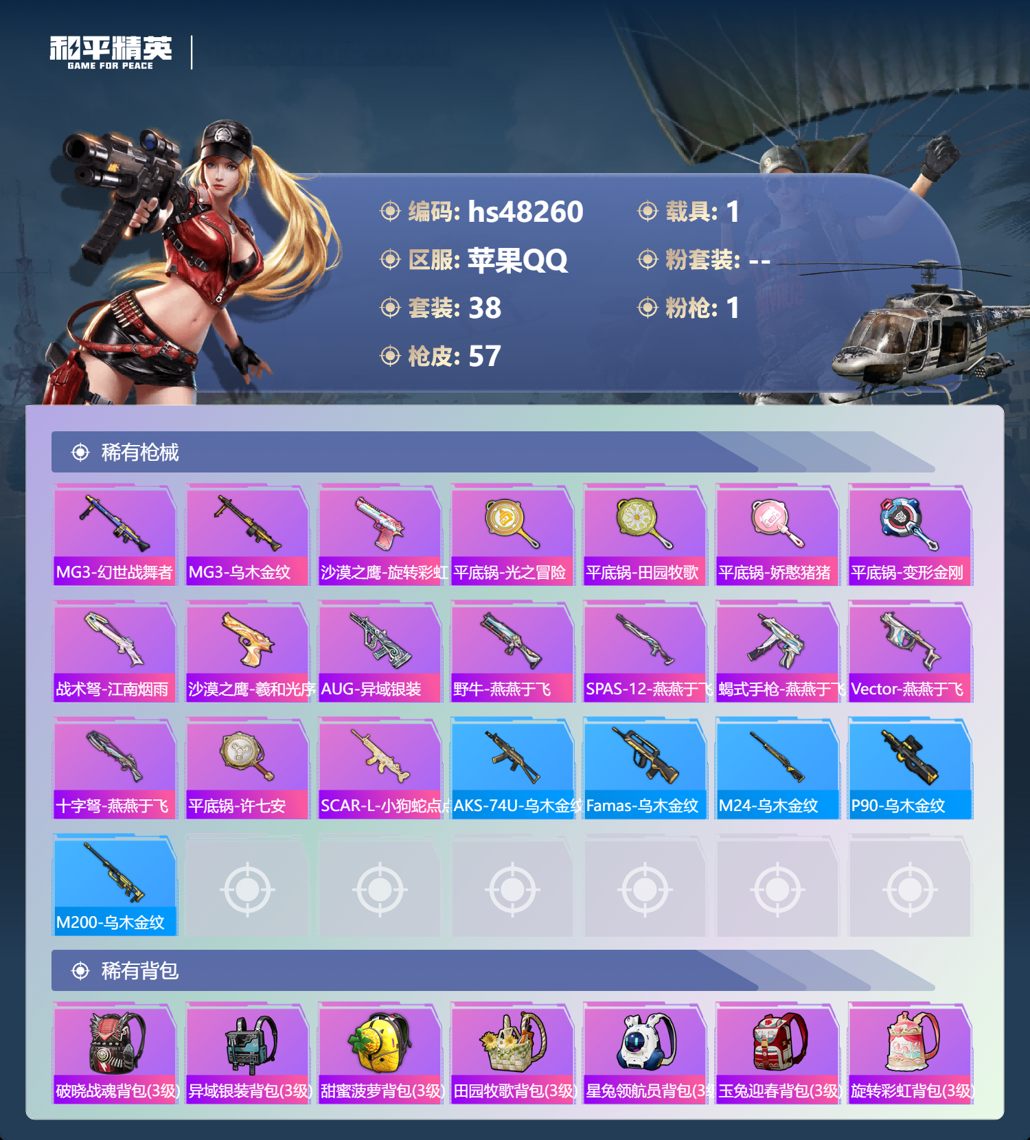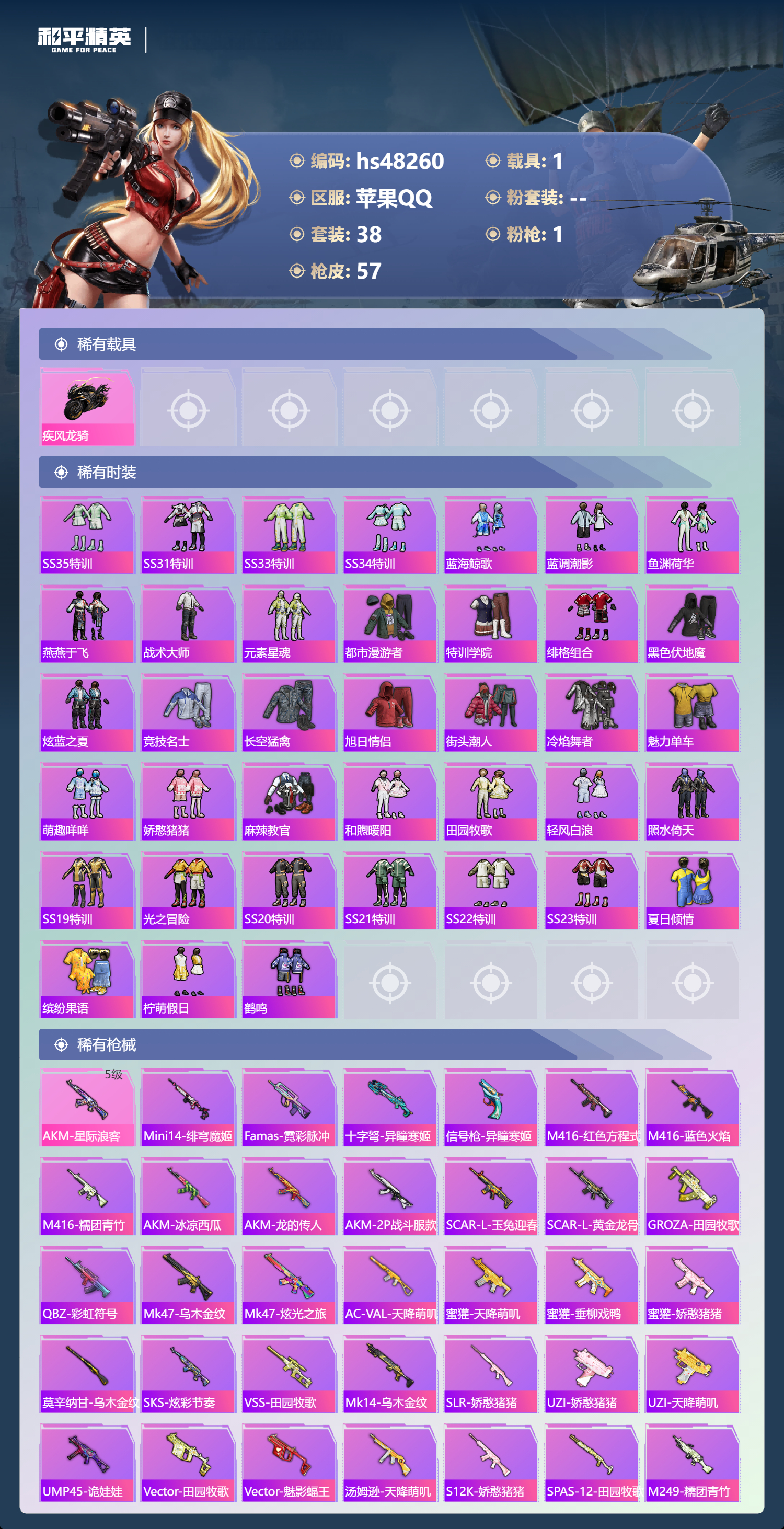 游戏区服:和平精英 / 苹果系统 / QQ帐号