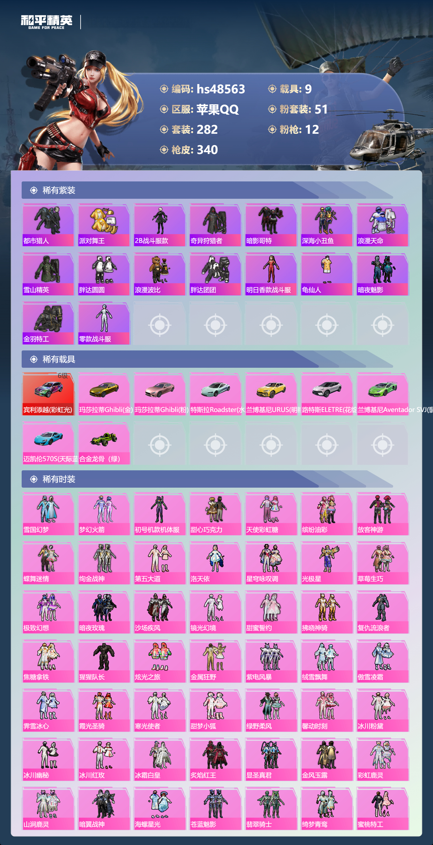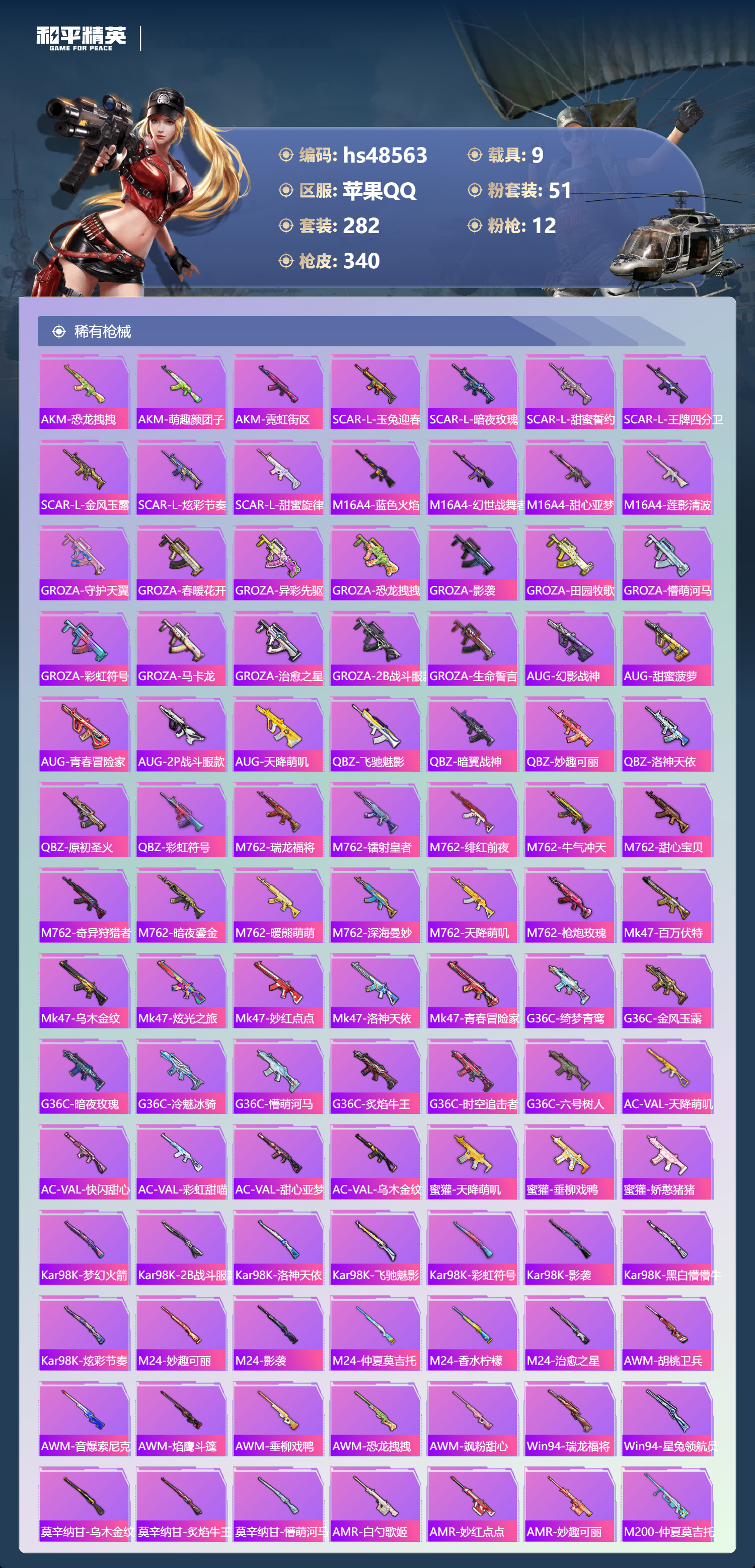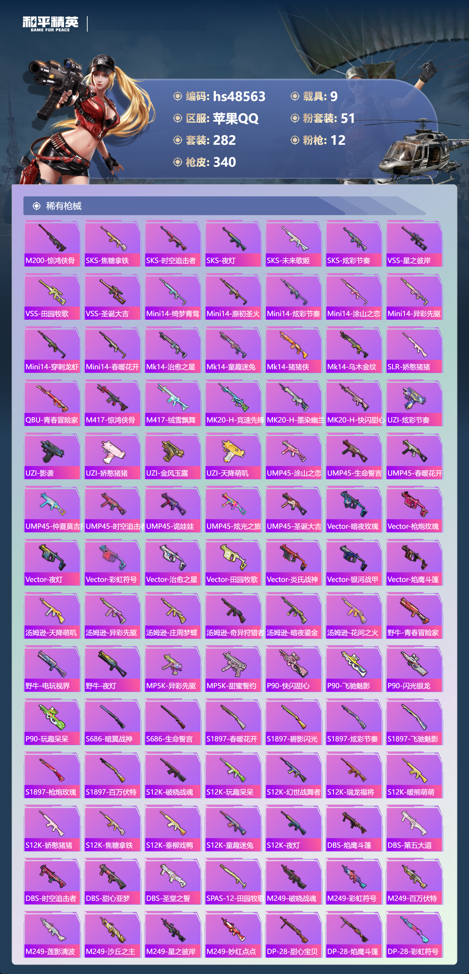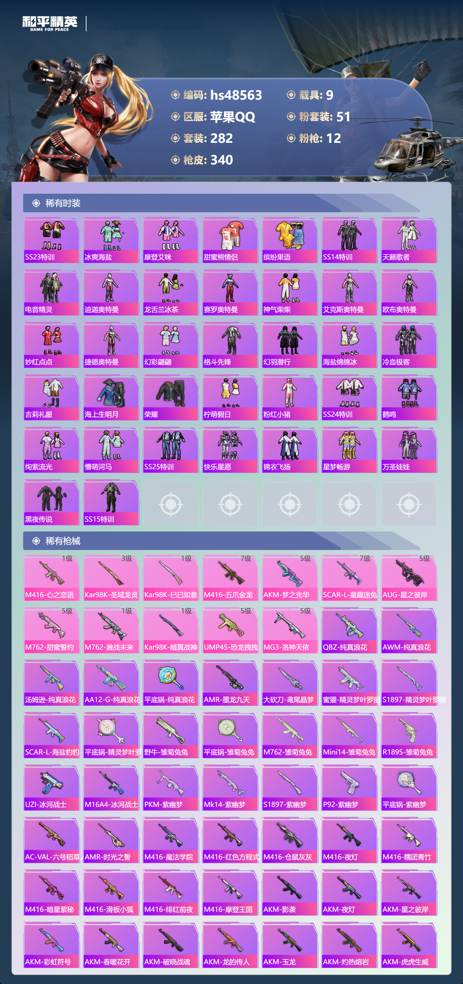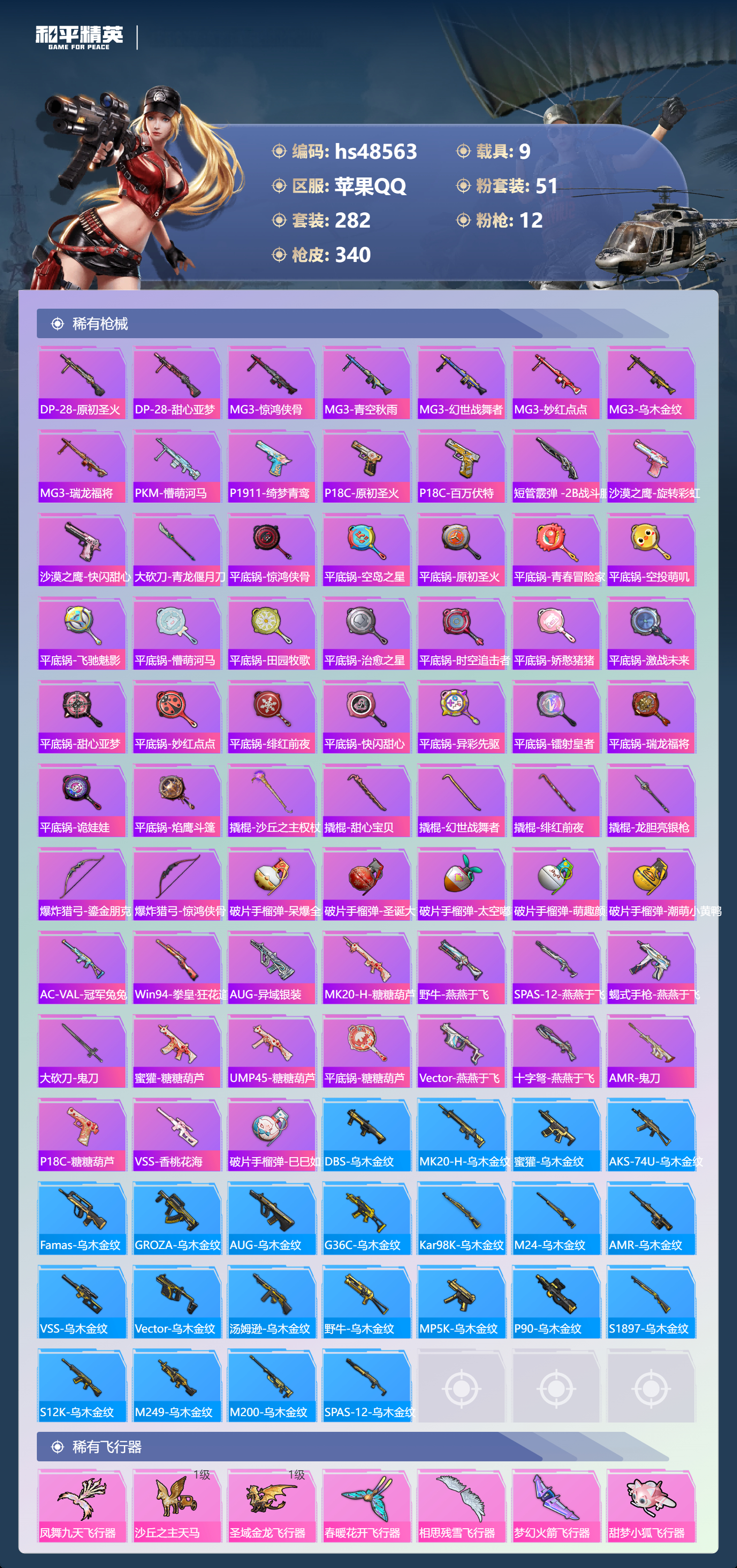 【95885】【可二次】【苹果QQ】M762-甜蜜誓约 龟仙人 绿野柔风 漫步者 都市猎人 苍蓝魅影 金属狂野 UMP45-恐龙拽拽 豚鼠丹丹 显圣真君 梦起落英 M762-奇异狩猎者 M416-仓鼠灰灰 M416-心之恋语 缤纷油彩 深海小丑鱼 浪漫波比 山涧鹿灵 馨动时刻 SCAR-童趣迷兔 蝶舞迷情 特斯拉R水滴蓝 AUG-星之彼岸 纯白誓言 紫电风暴 兰博SVJ绿色 甜梦小狐飞行器 相思