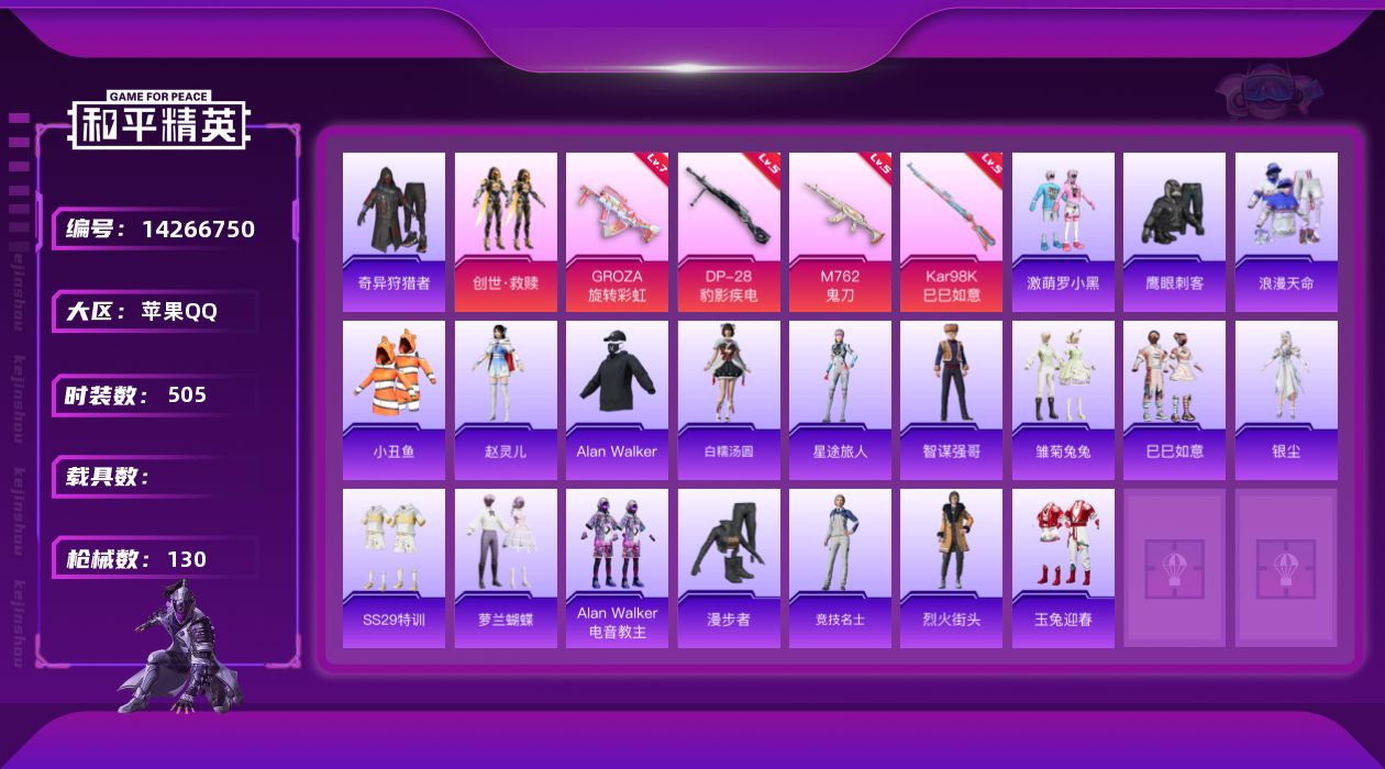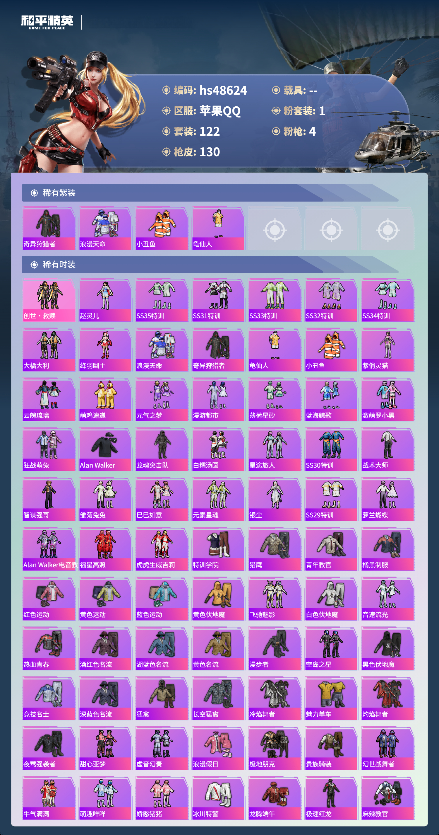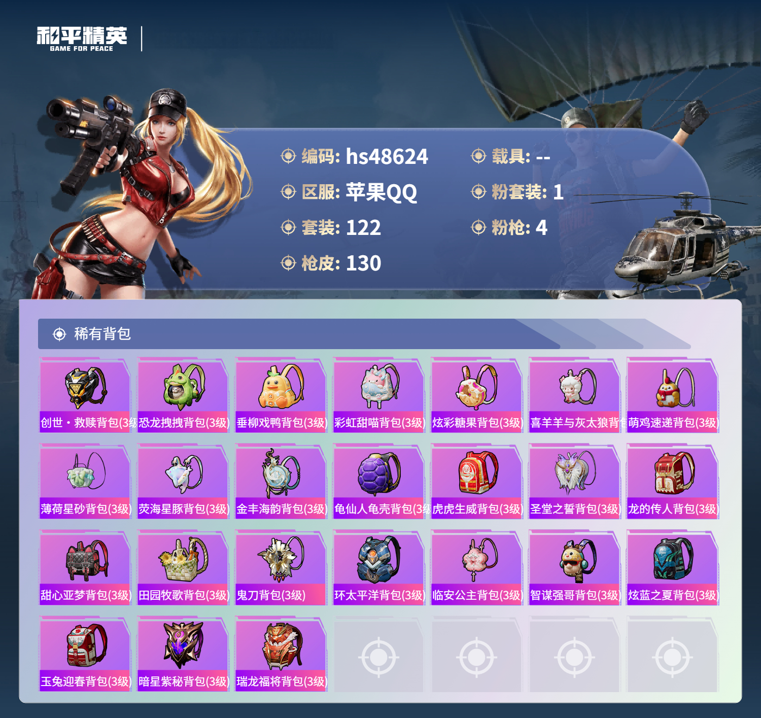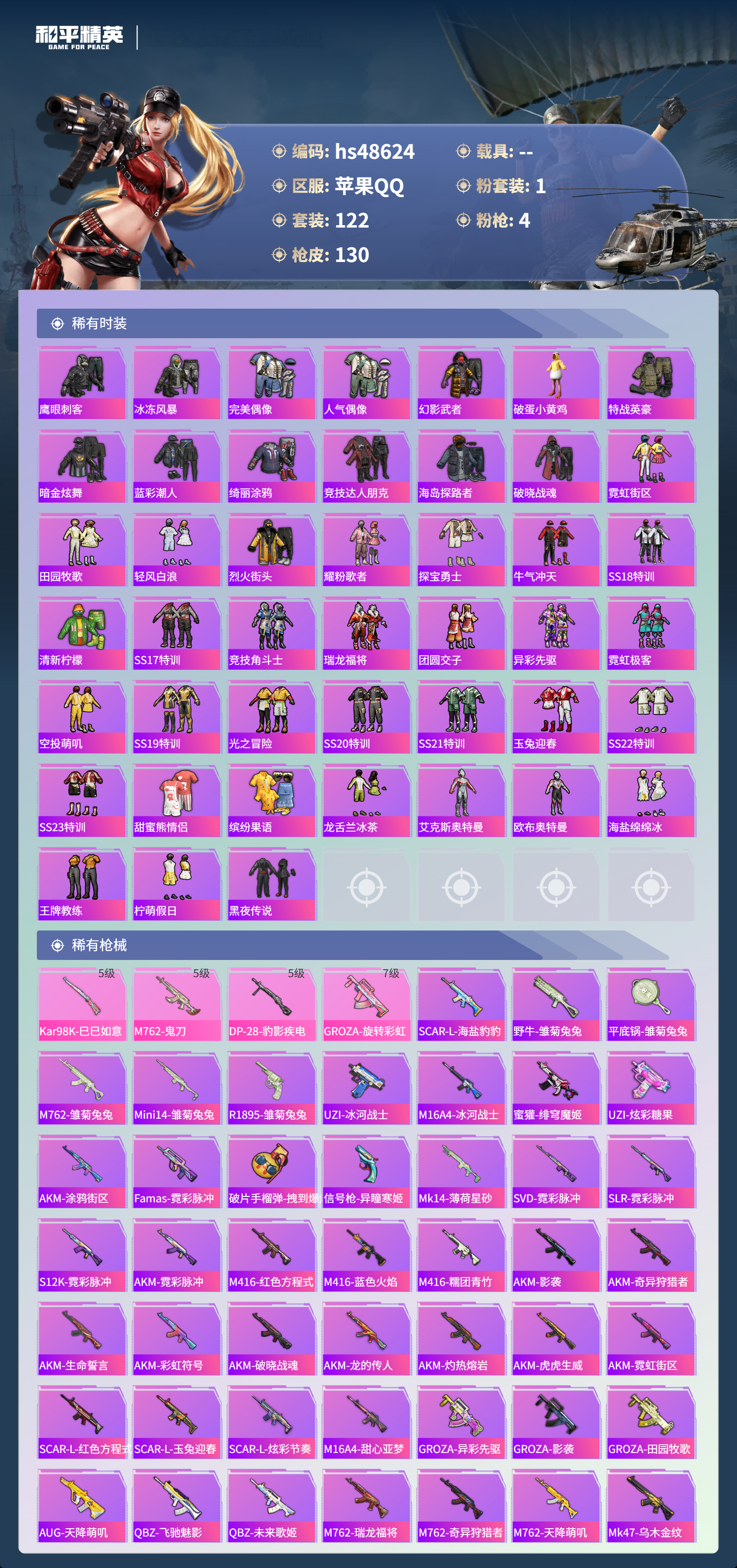 游戏区服:和平精英 / 苹果系统 / QQ帐号
