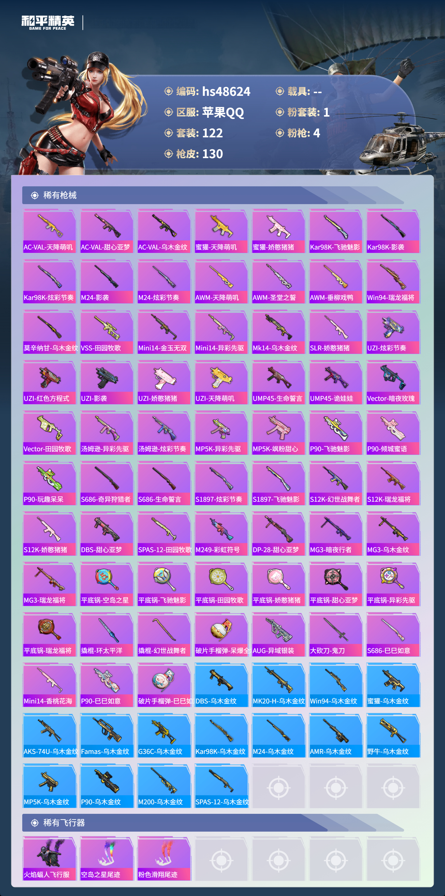 【95910】【不可二次】【苹果QQ】龟仙人 S686-奇异狩猎者 漫步者 奇异狩猎者 M762-瑞龙福将 极速红龙 M762-奇异狩猎者 浪漫假日 瑞龙福将 GROZA-旋转彩虹 浪漫天命 激萌罗小黑 团圆交子 AKM-奇异狩猎者