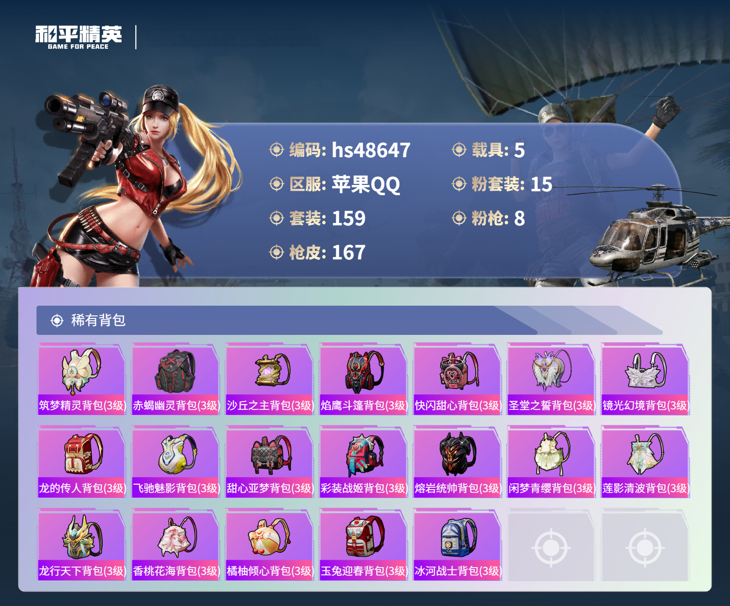 游戏区服:和平精英 / 苹果系统 / QQ帐号