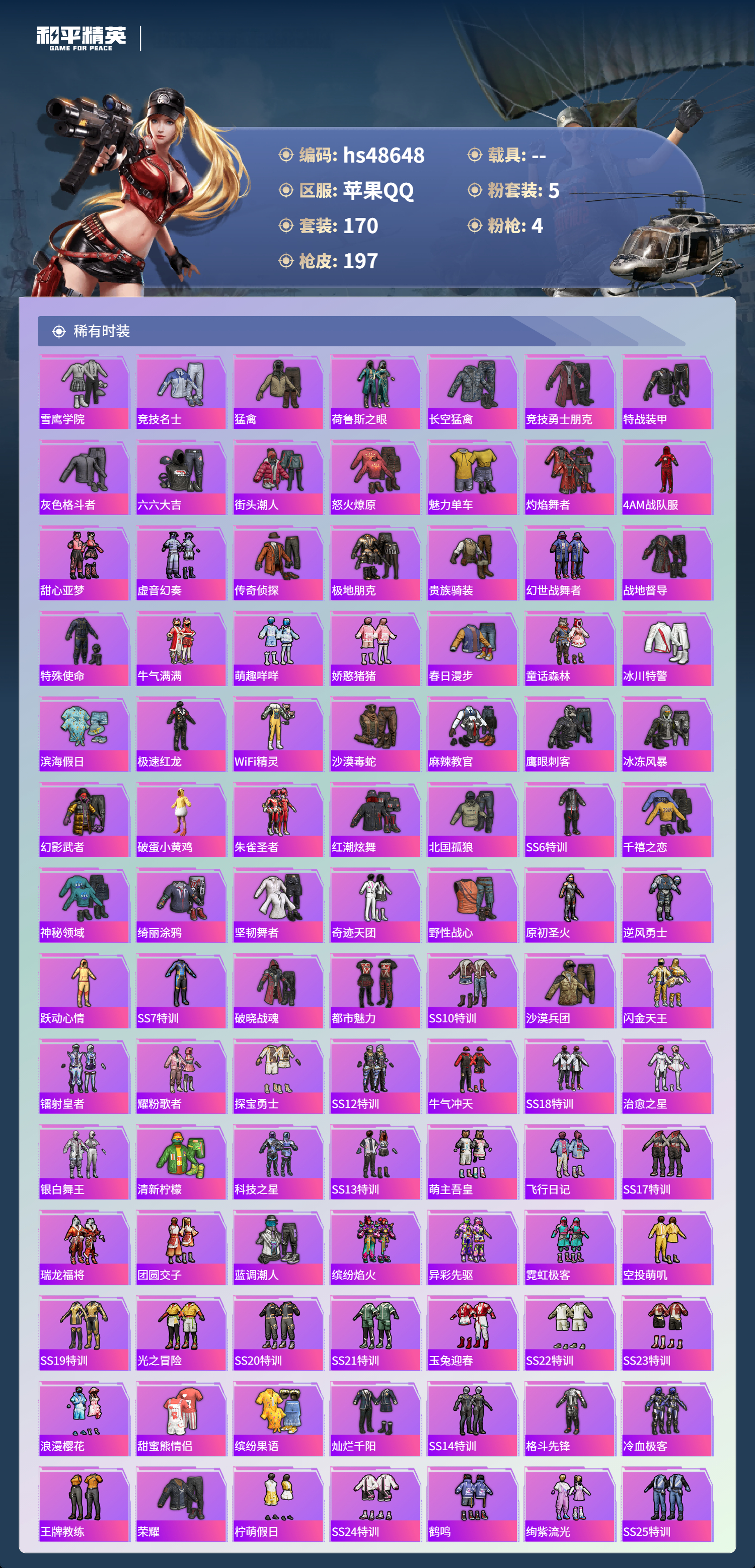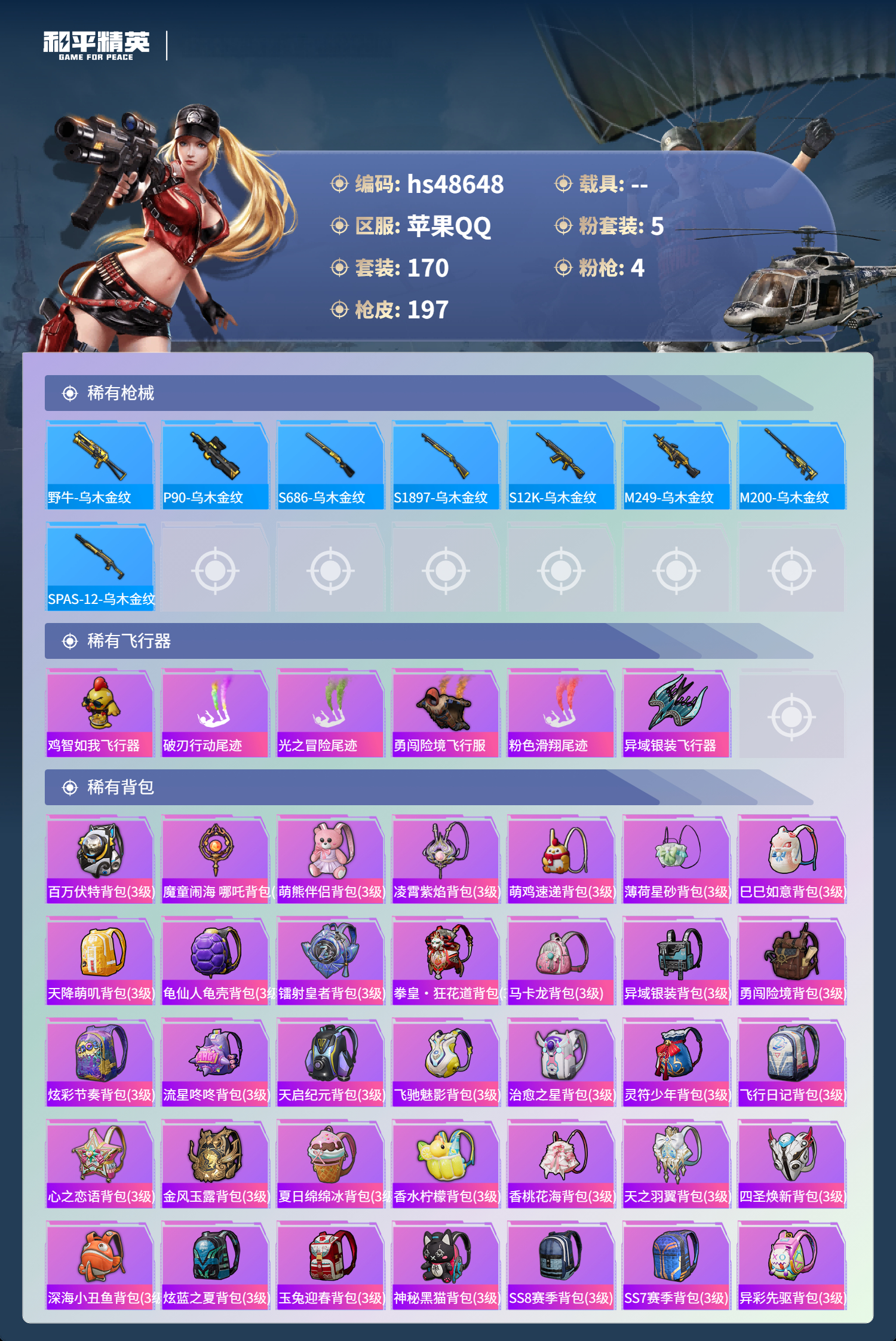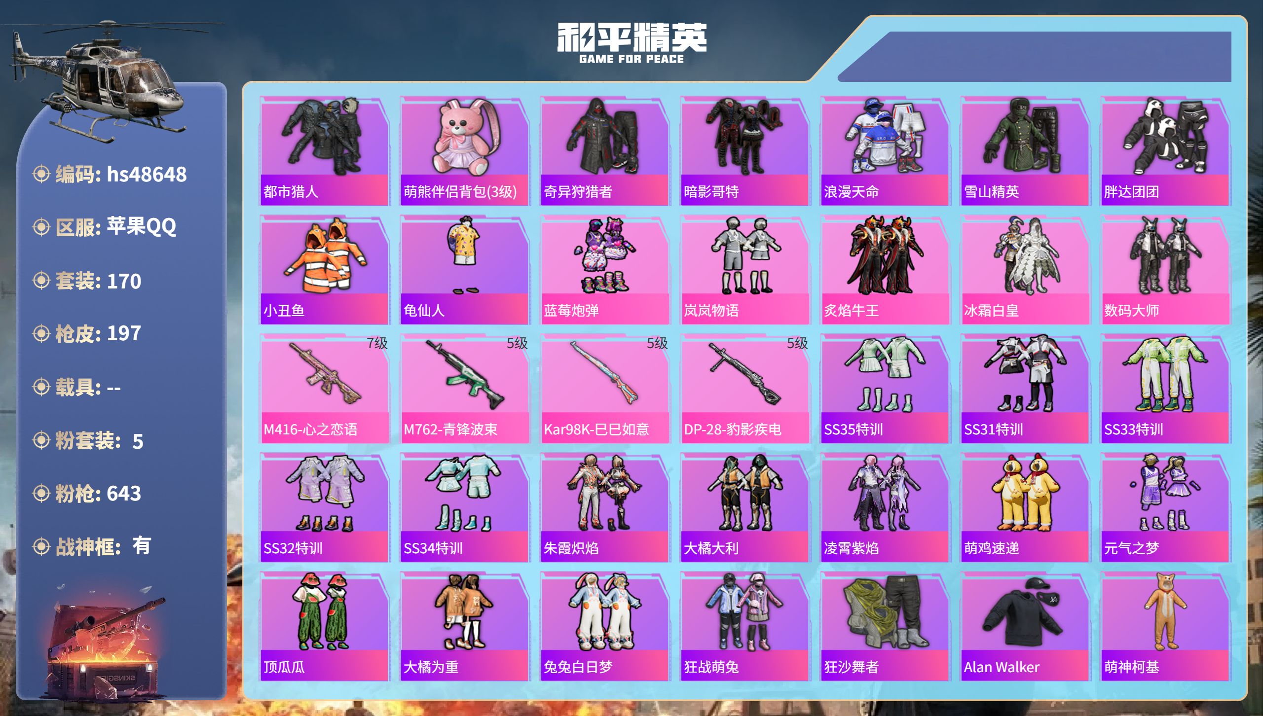 【95915】【不可二次】【苹果QQ】蓝莓炮弹 龟仙人 大橘为重 S686-奇异狩猎者 M762-青锋波束 漫步者 都市猎人 M24-奇异狩猎者 极速红龙 M762-奇异狩猎者 M416-心之恋语 M24-香水柠檬 瑞龙福将 浪漫天命 胖达团团 纯白誓言 团圆交子 岚岚物语 奇异狩猎者 萌神柯基 M762-瑞龙福将 海洋之心 狂沙舞者 童话森林 AKM-百万伏特 数码大师 暗影哥特 Vector