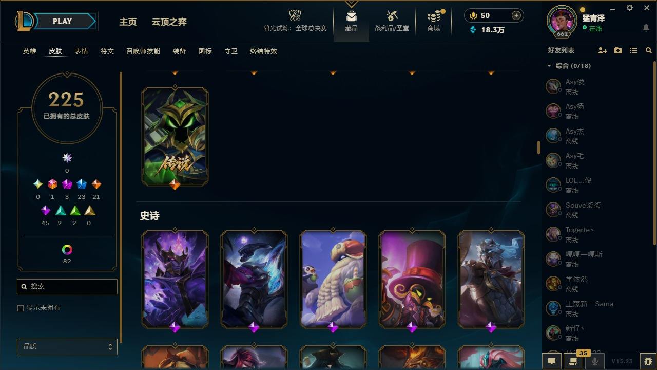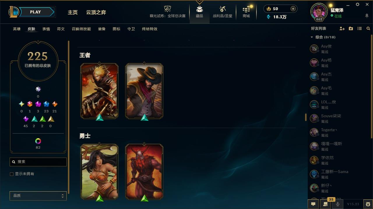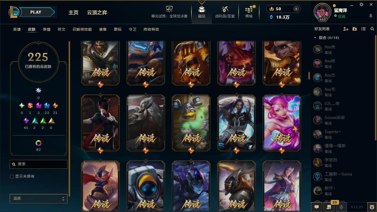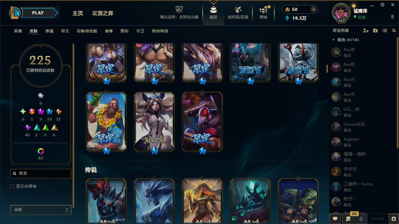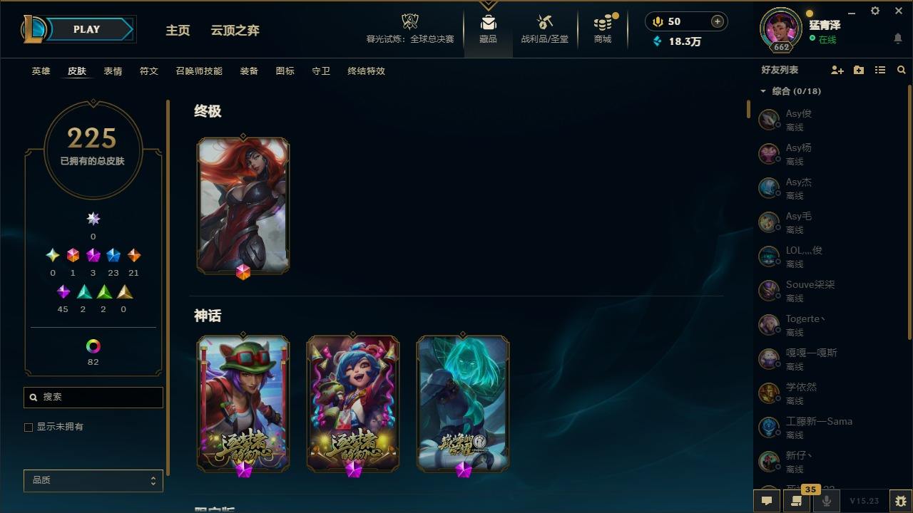 【99753】[14284224]1终极 3神话 23限定 21传说 45史诗 225皮肤 92炫彩 149英雄 可二次 可修改实名 【赛季限定皮】:胜利女神-菲奥娜,胜利之运 崔斯特,胜利剑圣 易,胜利女神 娑娜,胜利巨口 克格莫,胜利之王 泰达米尔【冠军限定系列】:S3 SKT T1 劫,S8 IG 艾瑞莉娅【冰雪节限定】:冬季仙境 卡尔玛,魄罗骑士 瑟庄妮,邪恶圣诞老人 维迦,雪默丁格【泳