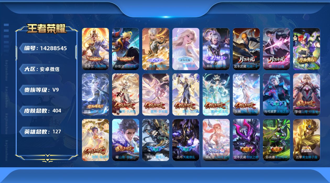 【100276】【不可二次】【微信(安卓)】霸王丸 黎明之约 暗影游猎 水晶猎龙者 原初探秘者 永昼 圣诞恋歌 星夜王子 沙漠行僧 紫霞仙子 烛龙 仲夏夜之梦 山海·苍雷引 缤纷独角兽 万华元夜 御銮 修罗 千军破阵 特工魅影 醍醐杖 飞莺探春 德古拉伯爵 古海寻踪 丁香结 时之恋人 电玩小子 白龙吟 深海之息 女武神 久胜战神 云鹰飞将 箭羽风息 狮舞东方 御旌 弈星混沌棋 大漠名商 青焰无极