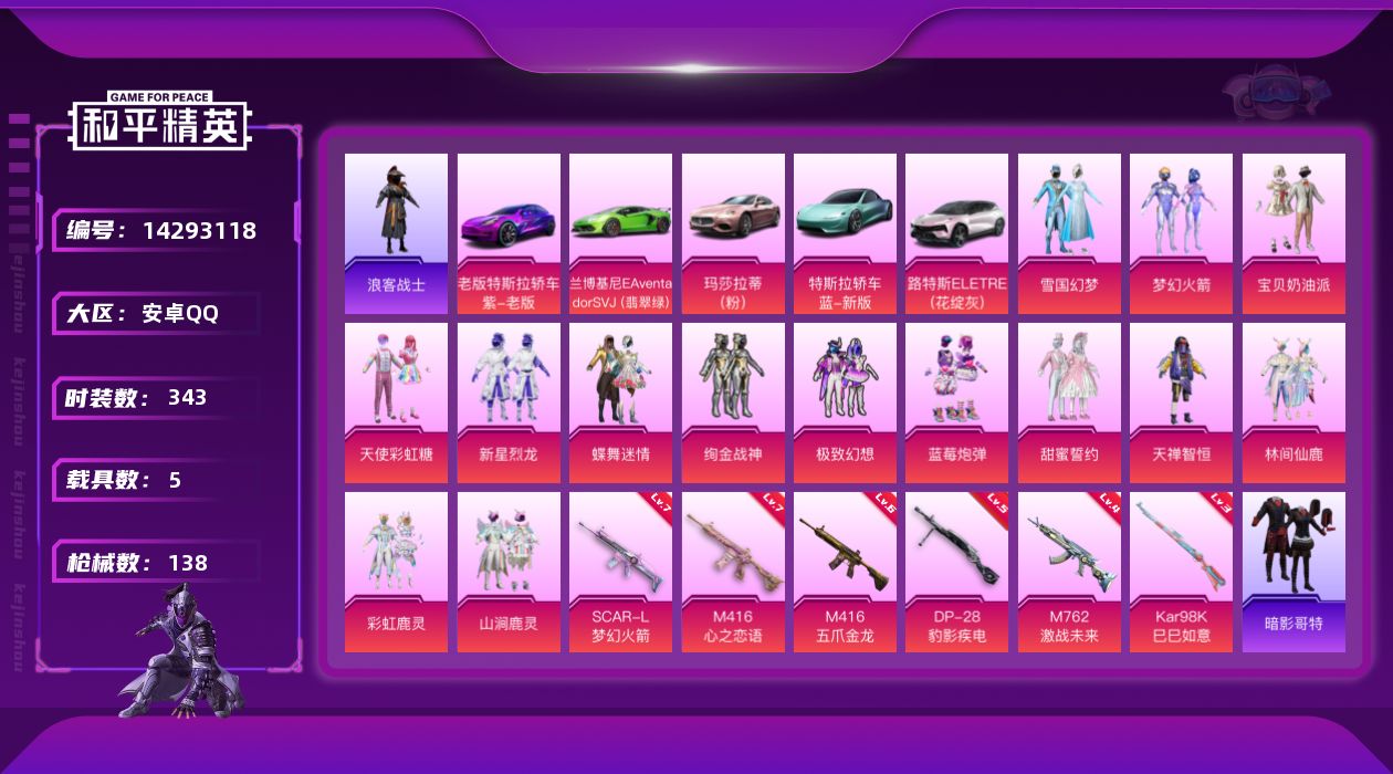 【100941】【不可二次】【安卓QQ】蓝莓炮弹 龟仙人 雪国梦幻 M416-五爪金龙 新星烈龙 天禅智恒 汤姆逊-林间仙鹿 林间仙鹿 罗小黑 Mini14-林间仙鹿 风花雪月飞行器 MK47-林间仙鹿 GROZA-林间仙鹿 M416-心之恋语 特斯拉3紫色 山涧鹿灵 瑞龙福将 激萌小黄鸭 AWM-激战未来 蝶舞迷情 特斯拉R水滴蓝 醒狮腾龙 梦幻火箭飞行器 纯白誓言 团圆交子 SCAR-L-梦