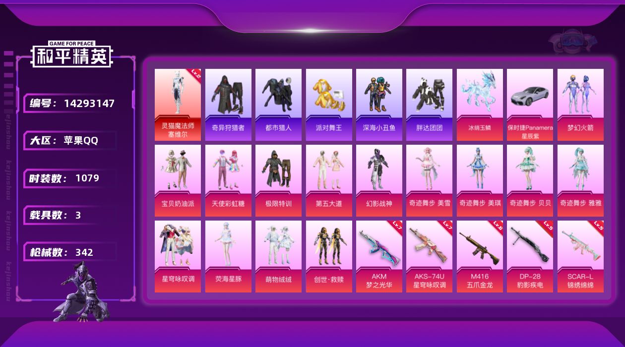 【100960】【不可二次】【苹果QQ】龟仙人 水银刺客 M416-五爪金龙 漫步者 都市猎人 M24-奇异狩猎者 极限特训 忍者信条 M762-奇异狩猎者 UMP45-量子极限 深海小丑鱼 瑞龙福将 灵猫魔法师-塞维尔 浪漫天命 胖达团团 团圆交子 繁龙极客飞行器 迅捷狂鲨 奇异狩猎者 M762-瑞龙福将 黑色刀锋 狂沙舞者 金羽特工 SCAR-L-锦绣绵绵 古堡领主飞行器 梦幻火箭 AKM-