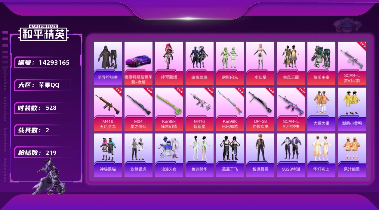 【100970】【不可二次】【苹果QQ】Kar98K-绿意幻情 大橘为重 M416-五爪金龙 M249-古堡领主 机械英豪 九霄 SCAR-L-机甲封神 快乐主宰 软嫩糖心蛋 特斯拉3紫色 M416-快乐主宰 碧影闪光 瑞龙福将 激萌小黄鸭 M416-超新星 浪漫天命 梦幻火箭飞行器 团圆交子 软萌银虎 SCAR-L-梦幻火箭 王牌四分卫飞行器 AUG-PEC最牛战神 暗夜契约 奇异狩猎者 M7
