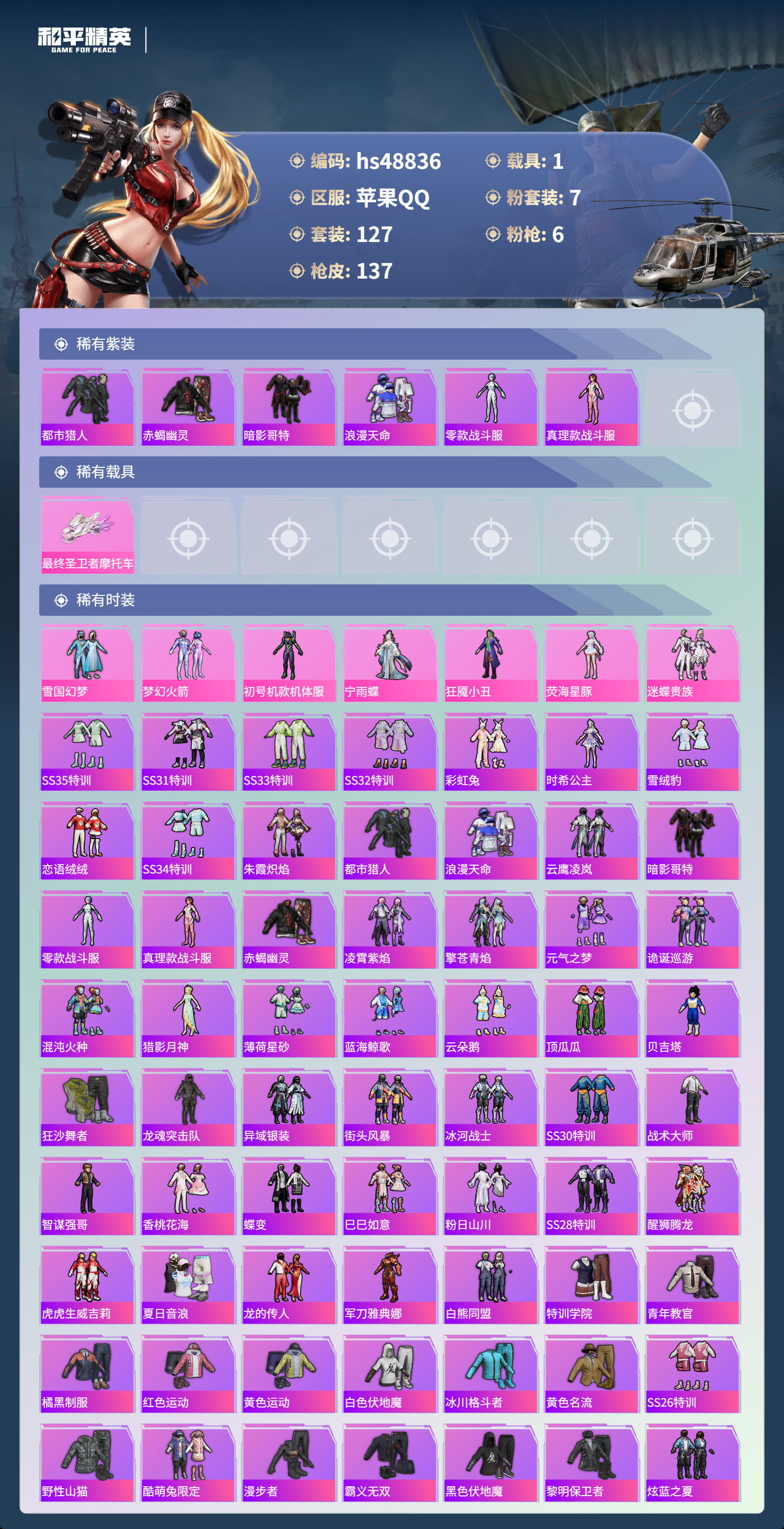 游戏区服:和平精英 / 苹果系统 / QQ帐号