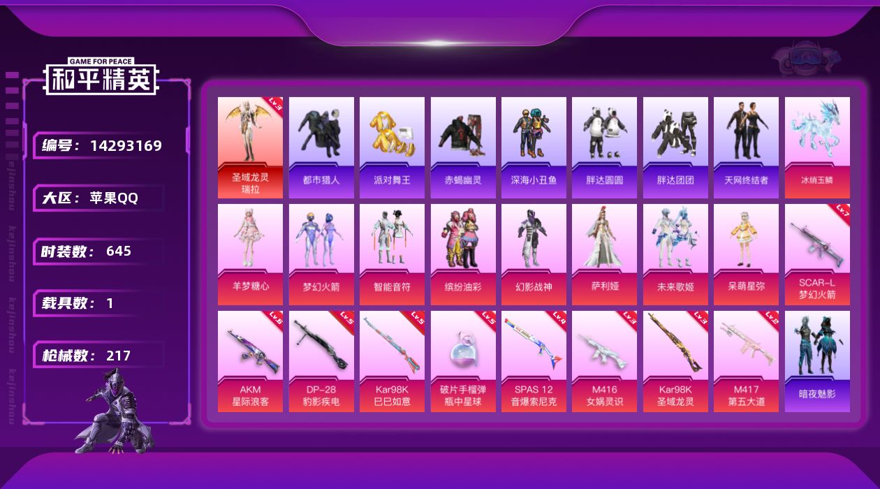 【100976】【不可二次】【苹果QQ】龟仙人 S686-奇异狩猎者 AKM-星际浪客 漫步者 都市猎人 SPAS-12-音爆索尼克 M24-奇异狩猎者 赤蝎幽灵 M762-奇异狩猎者 缤纷油彩 深海小丑鱼 瑞龙福将 智能音符 M416-黄金龙骨 浪漫天命 梦幻火箭飞行器 AWM-黄金龙骨 激萌罗小黑 胖达团团 纯白誓言 胖达圆圆 团圆交子 SCAR-L-梦幻火箭 M762-瑞龙福将 SCAR-